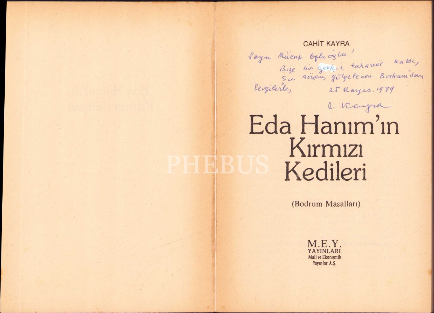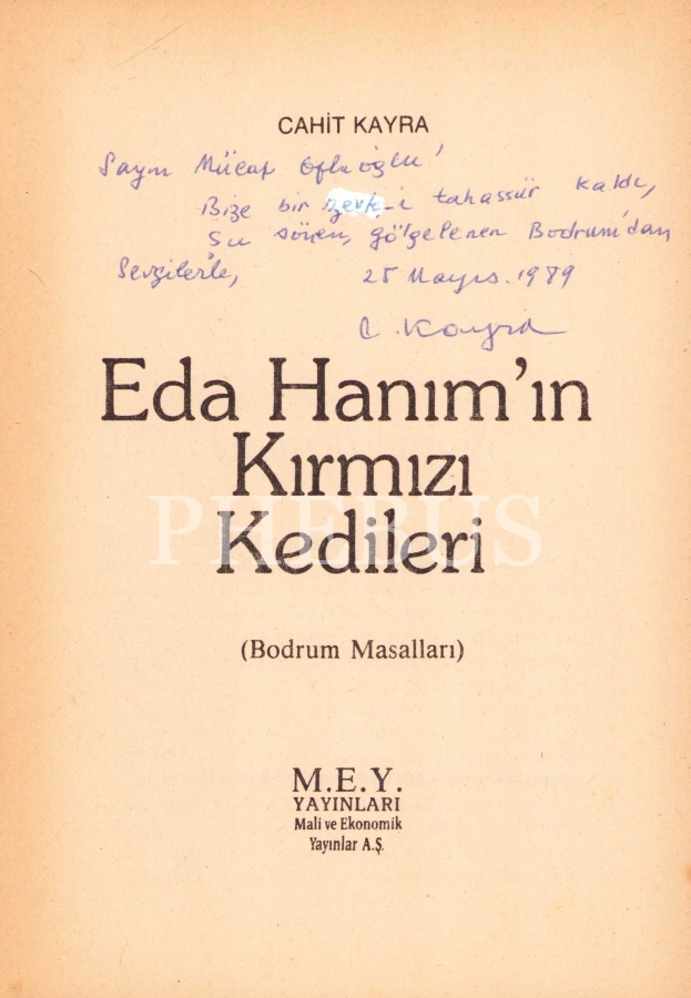 Cahit Kayra'dan Tiyatrocu Mücaf Ofluoğlu'na İthaflı ve İmzalı "Eda Hanım'ın Kırmızı Kedileri", M.E.Y Yayınları, 175 sayfa
