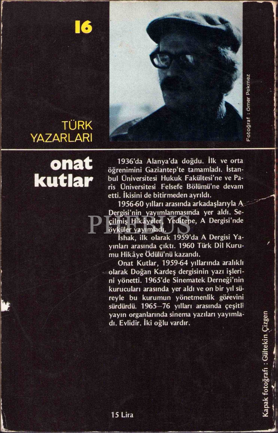 İthaf "Sayın Rauf Mutluay'a sevgiyle Onat Kutlu 9.2.1977" şeklindedir. Onat Kutlar, Babası Ali Rıza Bey'in hakim olarak görevli bulunduğu Alanya'da doğdu. Ailesi, babasının görevinden isitfa etmesiyle Gaziantep'e döndü. Kutlar, ilk ve orta öğrenimini Gaziantep'te tamamladı. 1953'te okumaya hak kazandığı Güzel Sanatlar Akademisi mimarlık bölümündeki öğrenimine devam etmedi. Hemen arkasından başladığı İstanbul Üniversitesi Hukuk Fakültesi'ndeki öğrenimini de tamamlamadı. Hukuk fakültesinde okuduğu yıllardan başlayarak Demir Özlü, Adnan Özyalçıner, Ülkü Tamer, Konur Ertop, Doğan Hızlan, Engin Ertem, Önay Sözer gibi isimlerle üniversite yıllarında 1961'de felsefe öğrenimi görmek üzere Paris'e gitti. Paris'te sinema ile ilgilenmeye başladı. Türkiye'de üniversite yıllarında olduğu gibi Paris'te bulunduğu yıllarda da entelektüel bir çevreye sahipti. Fikret Mualla, Hakkı Anlı, Selim Turan, Mübin Orhon gibi Türk sanatçılarla birarada oldu. Sinemaya duyduğu ilgi ile Henri Langlois'nin yöneticiliğini yürüttüğü Fransız Sinematek Derneği'ne kaydoldu. Onat Kutlar, ilk şiir ve hikâyelerini ilkokul yıllarında yazmaya başladı. İlk şiiri 1950’de Küçük Dergi’de, ilk öyküsü “Volan Kayışı” da Seçilmiş Hikâyeler dergisinde 1955’te yayımlandı. İlkokul yıllarından başlayarak konuşma, okuma ve yazma konusunda çok başarı olan Kutlar, öğretmenlerinin dikkatini çeken bir öğrenci oldu. Dergilerde yayımlanan eserlerinin ardından basılan ilk öykü kitabı 1959'da yayımlanan İshak ismini taşır. Dokuz hikayeden oluşan eser modern Türk öykücülüğü için önemli bir aşamayı gösterir. Demir Özlü, Ferit Edgü, Adnan Özyalçıner, Ergin Ertem, Tarık Dursun K., Muzaffer Buyrukçu, Muzaffer Erdost, Erdal Öz, Orhan Duru, Leyla Erbil, Bilge Karasu, Yusuf Atılgan ve Doğan Hızlan gibi isimlerle birlikte 1950 Kuşağı öykücüleri arasında yer alan Kutlar, kaleme aldığı öyküler ile bu kuşağın yazarlarını da etkiler. İshak, aynı zamanda büyülü gerçekçiliğin edebiyattaki yansımasının görüldüğü ilk eserlerden biri olarak kabul edilir. Onun etkilendiği yazarlar arasında Camus, Dostoyevski, Sartre ve Kafka yer almaktadır.
