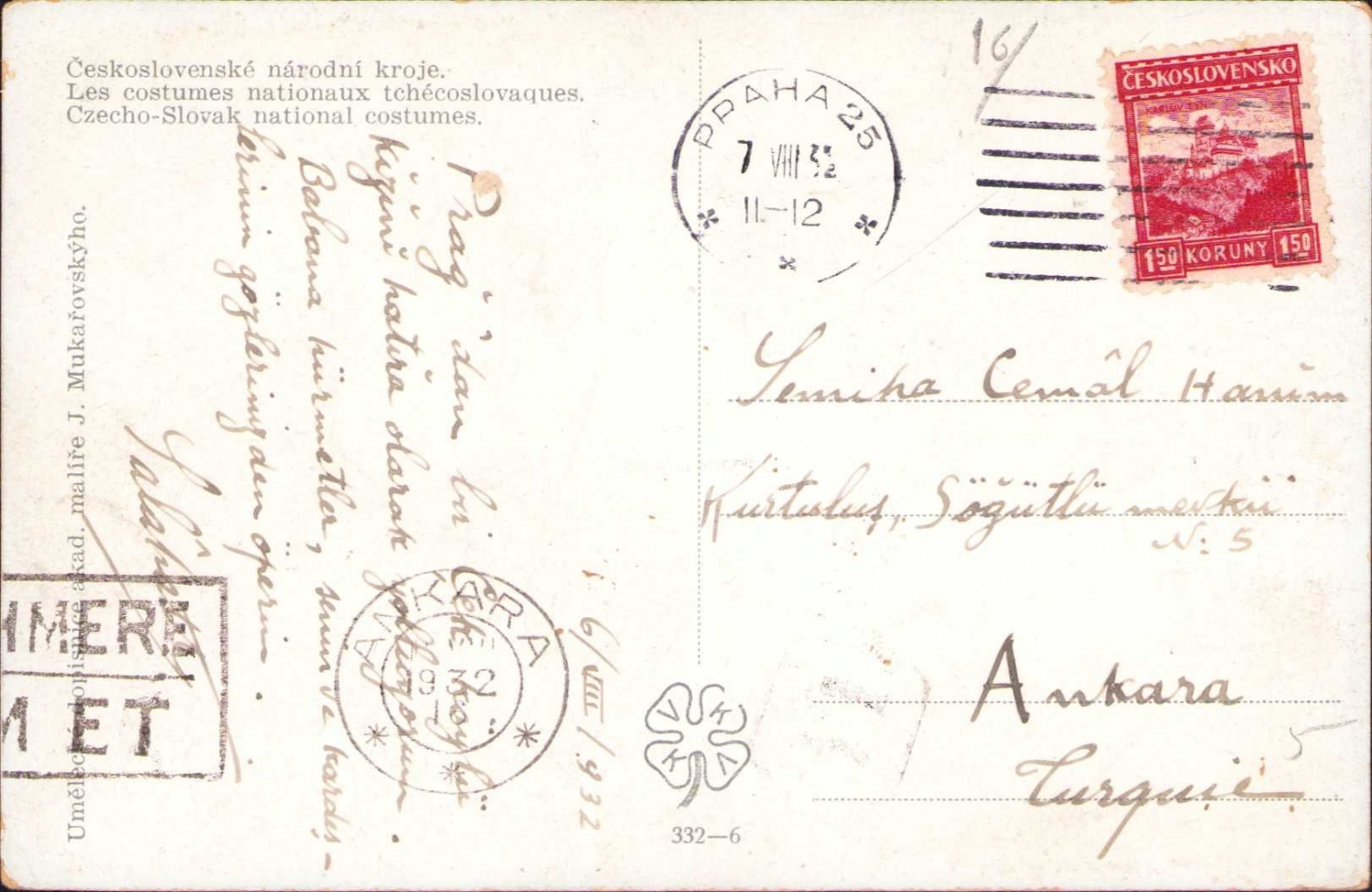 Felsefeci Yazar Semiha Cemal Hanım'a gönderilmiş kartpostal, 9x14 cm