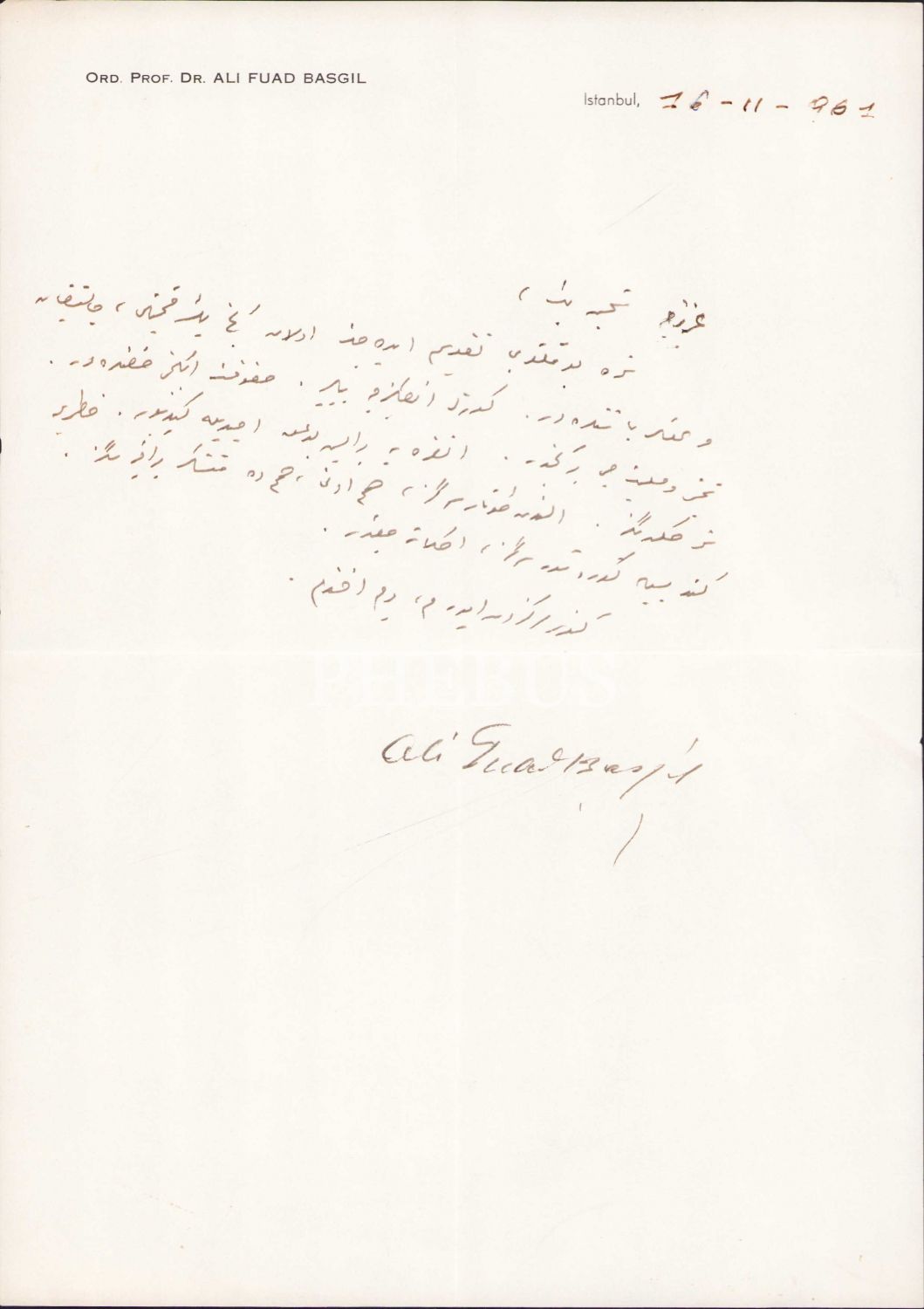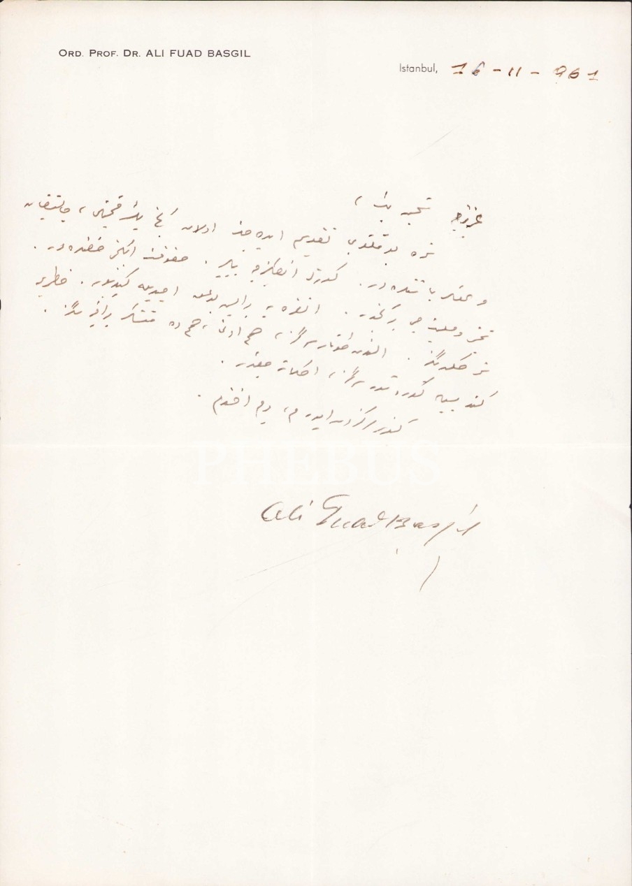 Ali Fuad Başgil ıslak imzalı mektup, 20x30 cm