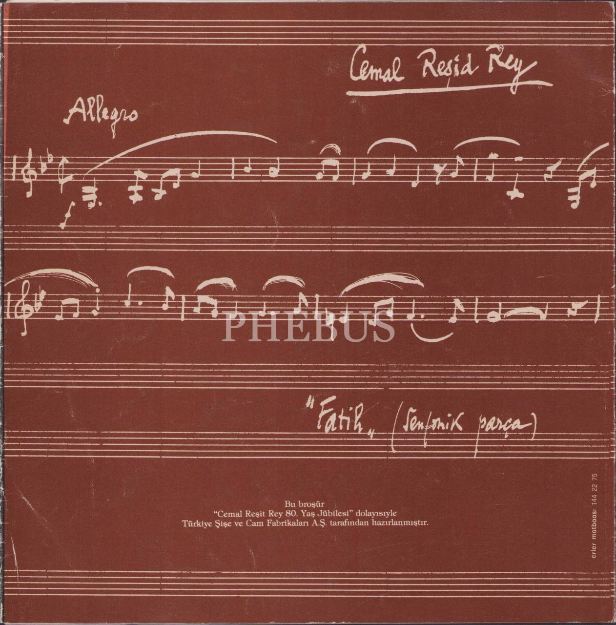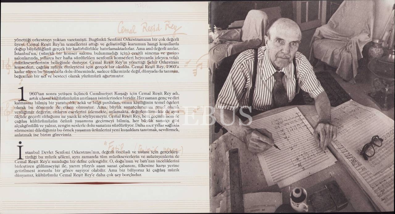 "Türk Beşlerinden" Meşhur Bestekar Cemal Reşit Rey'den İmzalı ve İthaflı 80. Yaş Jübilesi Dolayısıyla Hazırlanan Broşür, 23x23 cm