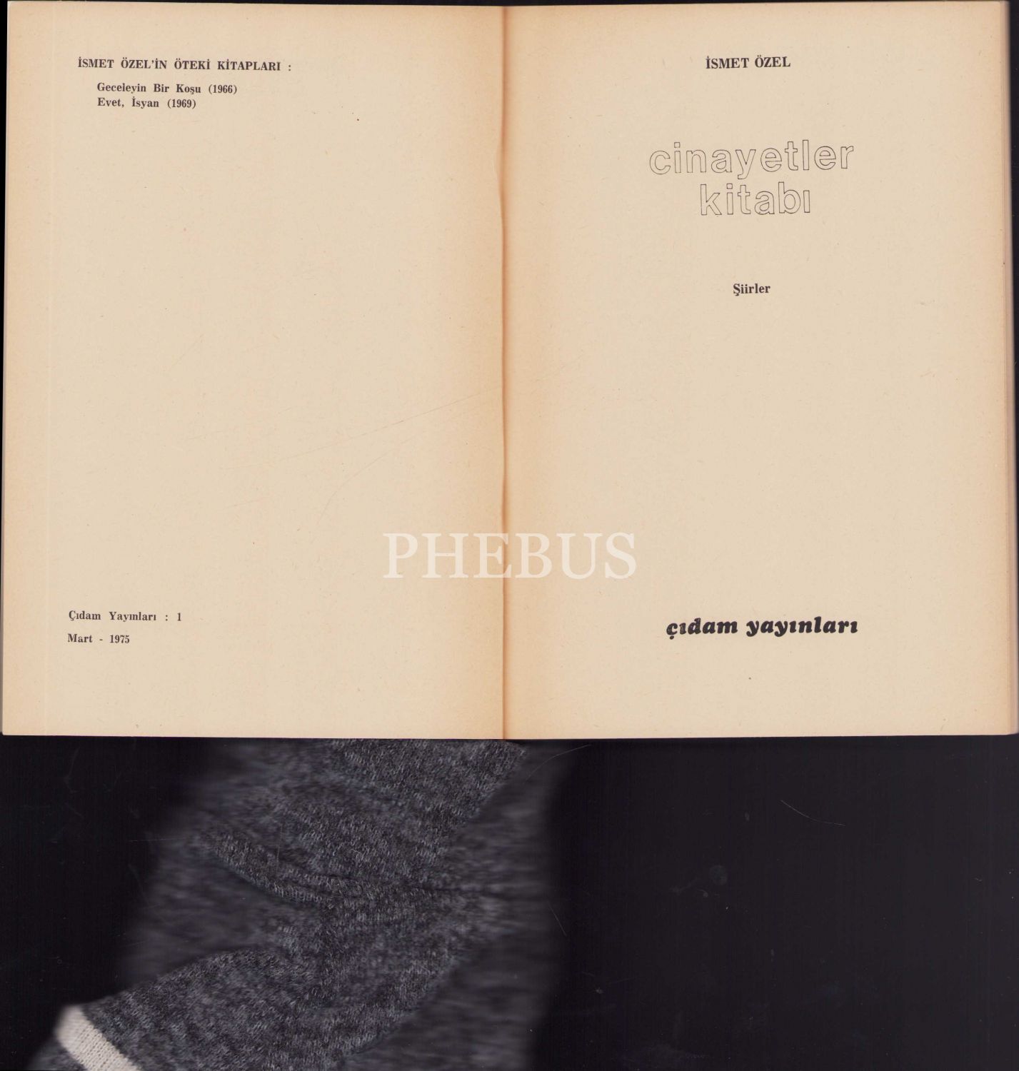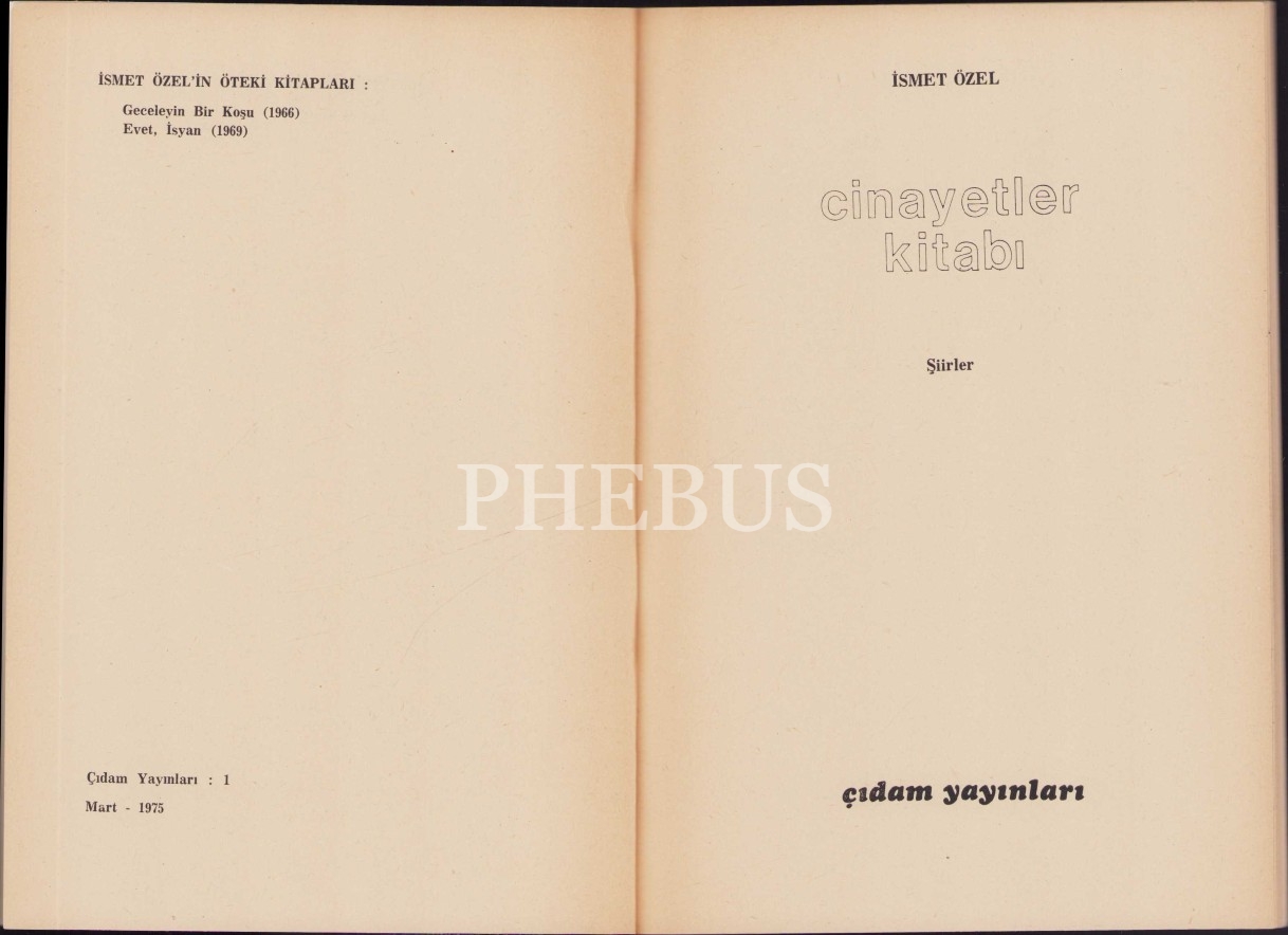 İsmet Özel'in "Cinayetler Kitabı", İlk Baskı 1975, Çıdam Yayınları, 39 sayfa, 14x19 sayfa