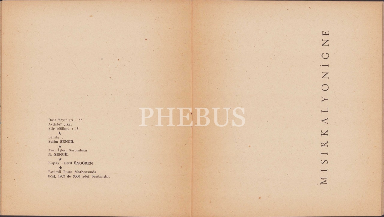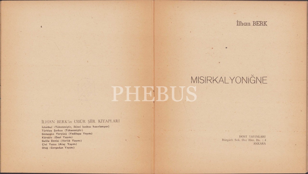 Mısırkalyoniğne, İlhan Berk, İlk Baskı, 1962 tarihli, Dost Yayınları, 29 sayfa