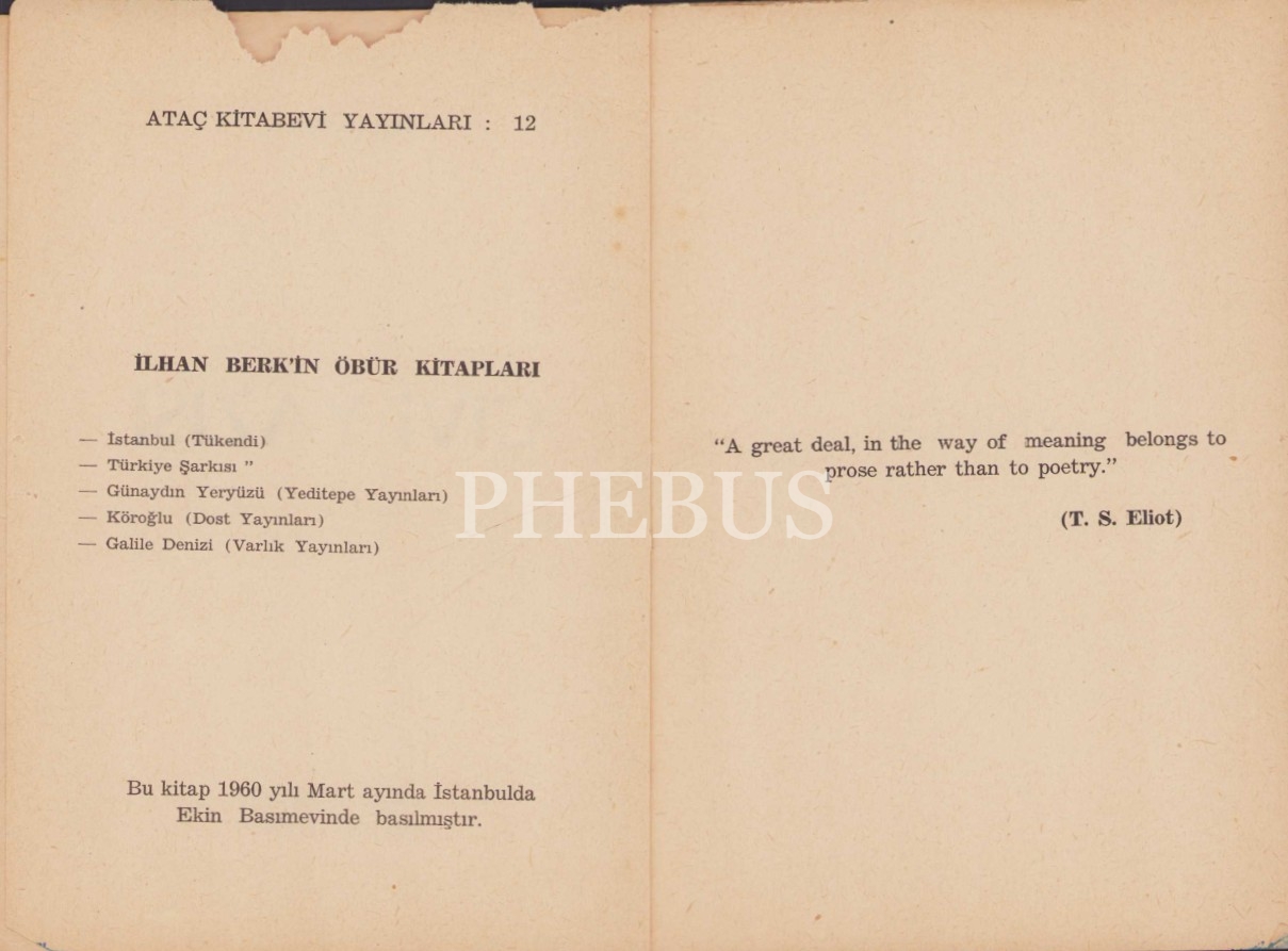 İlhan Berk'in "Çivi Yazısı", İlk Baskı, 1960, Ataç Kitabevi, 46 sayfa