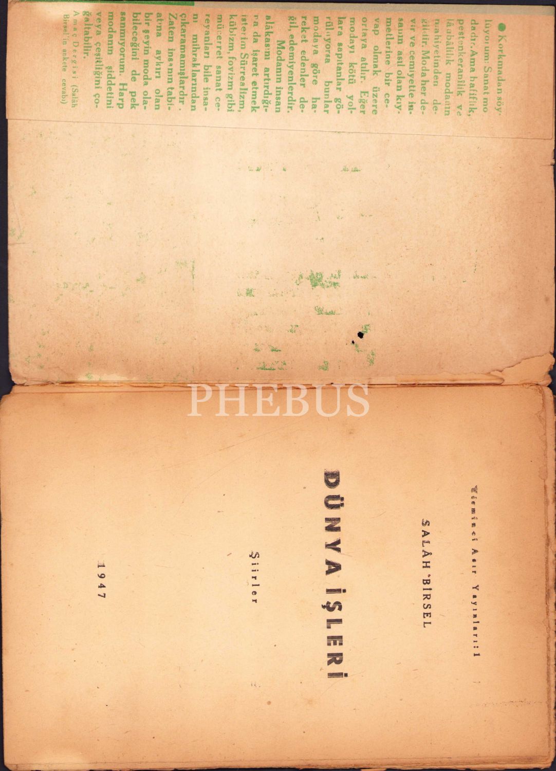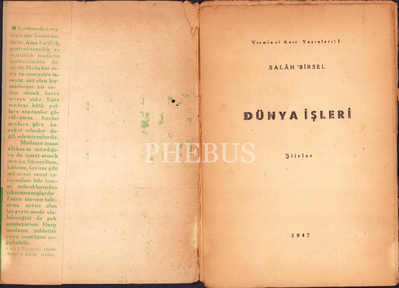 Salah Birsel'in "Dünya İşleri", İlk Baskı, 1947 tarihli, Yirminci Asır Yayınları, 31 sayfa, 14x20 cm