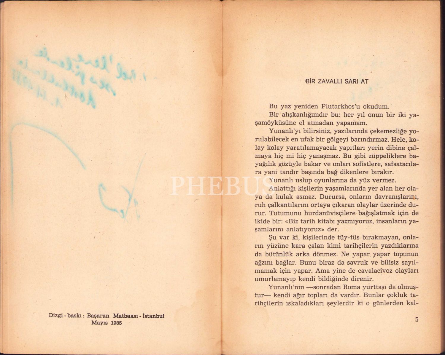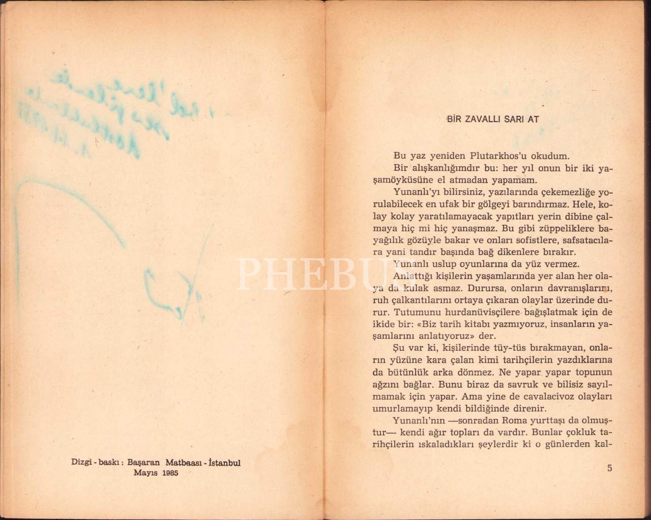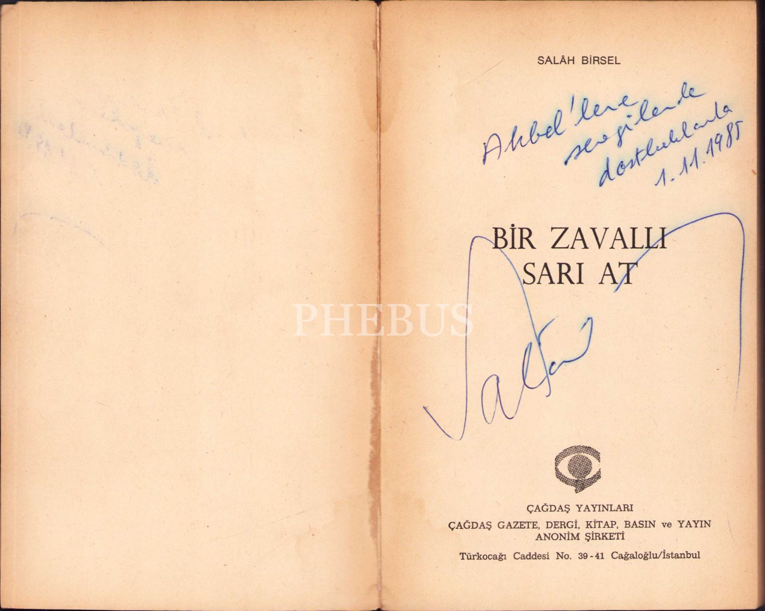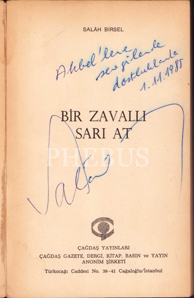 Salah Birsel'den İmzalı ve İthaflı "Bir Zavallı Sarı At", İlk Baskı, 1985, Çağdaş Yayınları, 205 sayfa
