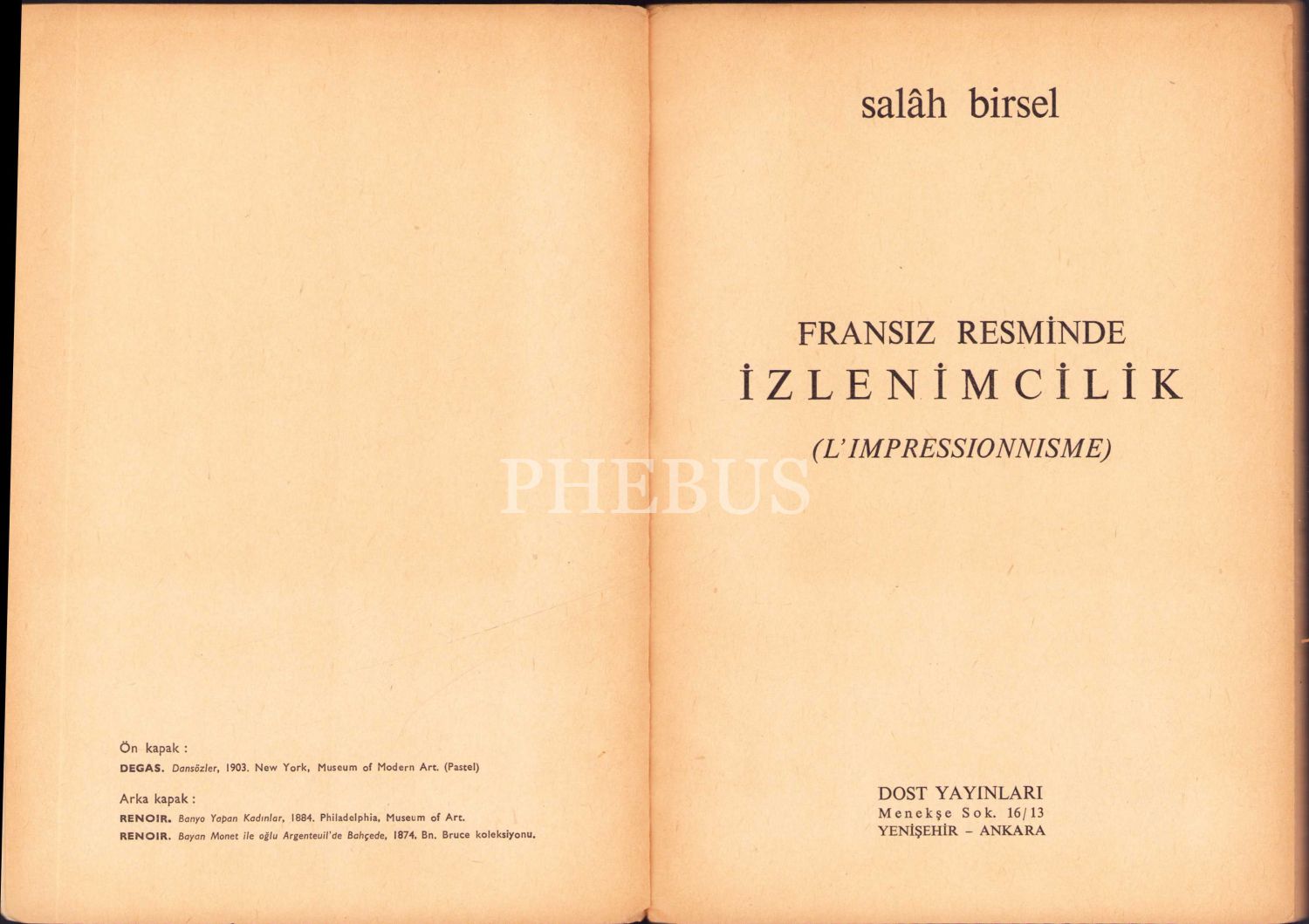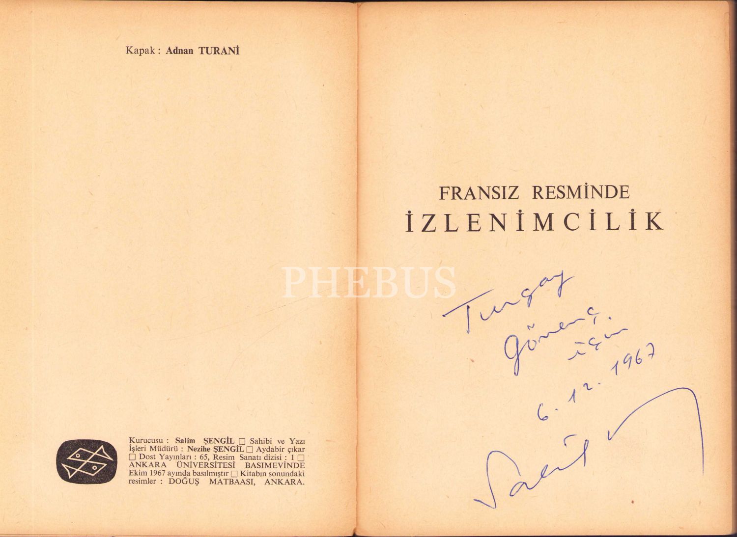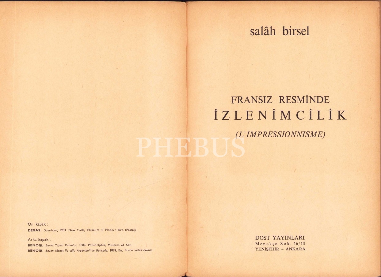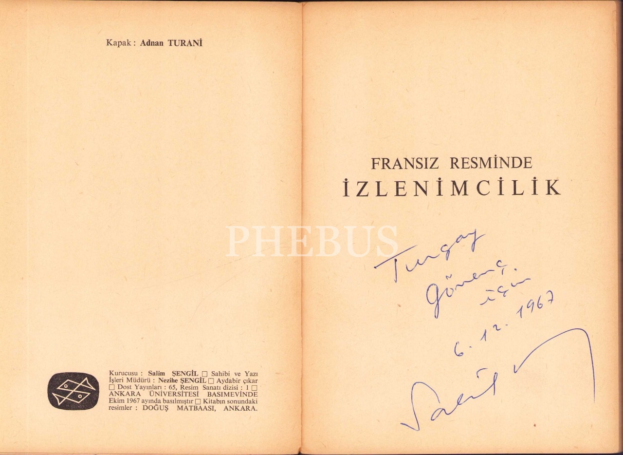 Salah Birsel'den Ressam Turgay Gönenç'e İmzalı ve İthaflı "Fransız Resminde İzlenimcilik", Dost Yayınları, 1967, 119 sayfa