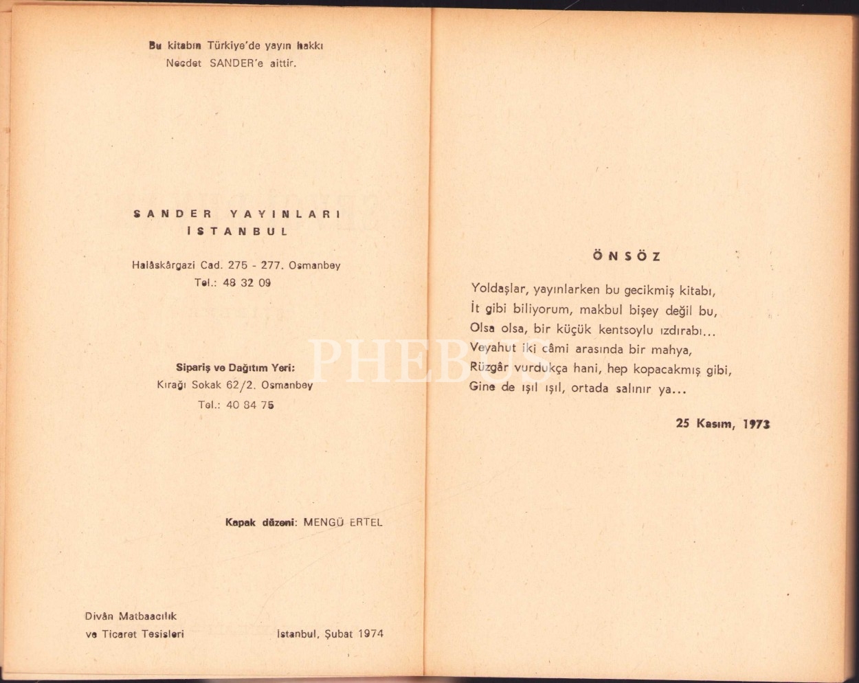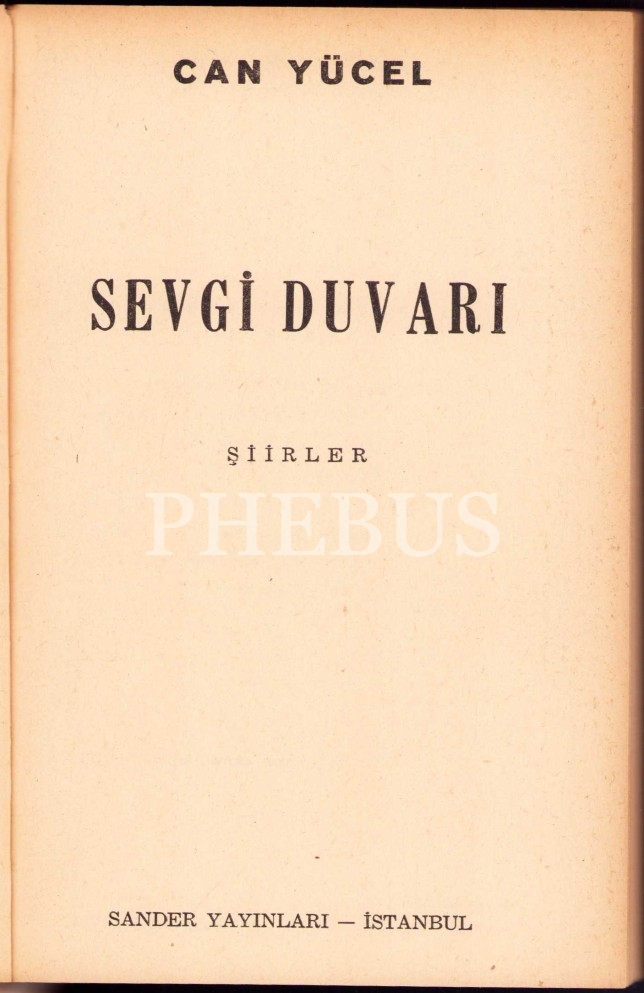 Sevgi Duvarı, Can Yücel, İlk Baskı, 1974, Sander Yayınları, 124 sayfa