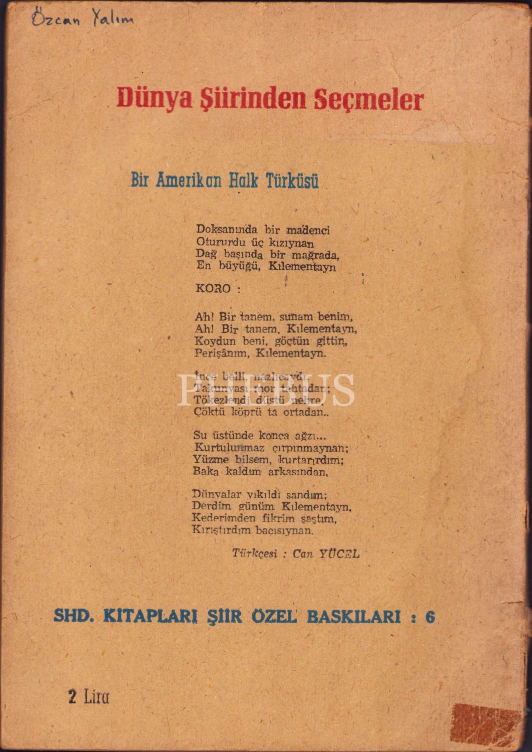 Tercüme Eden Can Yücel'den İmzalı ve İthaflı "Dünya Şiirinden Seçmeler", 1957,67 sayfa, 17x24 cm