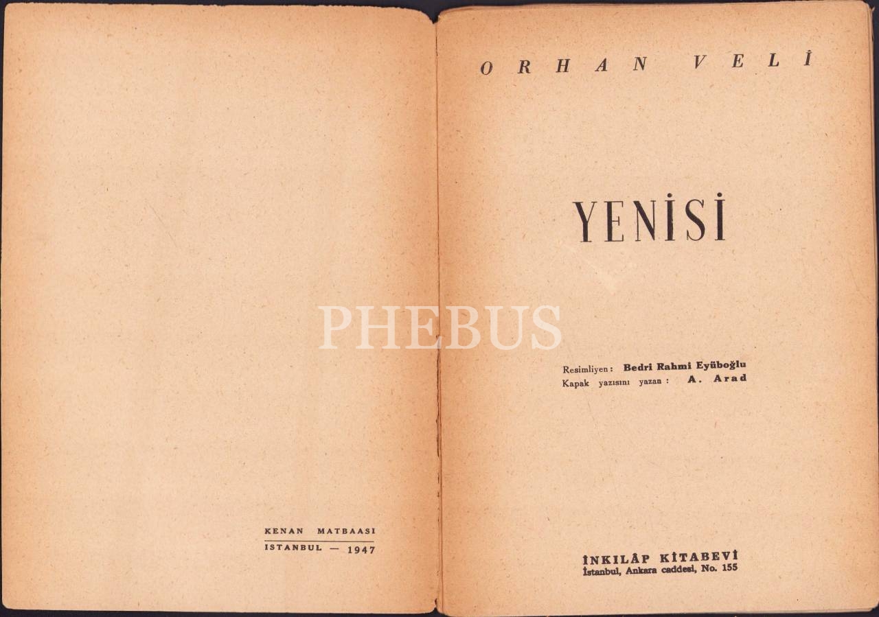 Orhan Veli'nin Dördüncü Şiir Kitabı: Yenisi, İlk Baskı, Resimler: Bedri Rahmi, 1947, İnkilap Kitabevi, 31 sayfa, tamirli.