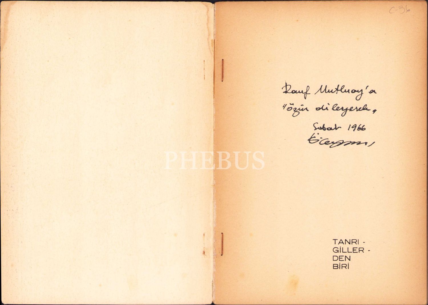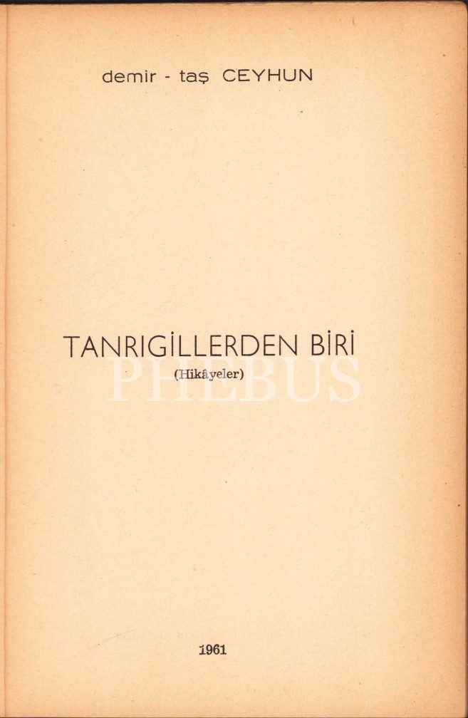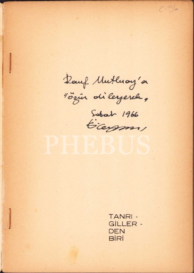 Yazar Demirtaş Ceyhun'dan Yazar Muzaffer Buyrukçu'ya İthaflı ve İmzalı "Tanrıgillerden Biri, 1961, 64 sayfa
