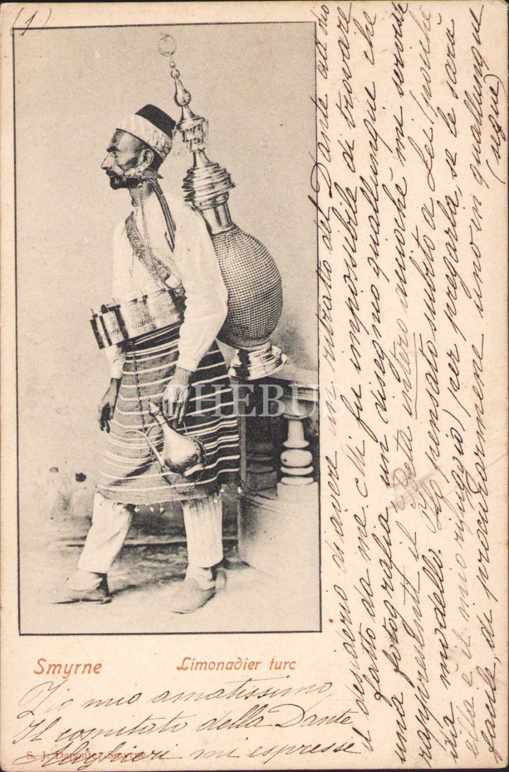 Osmanlı Dönemi Meslek Kartpostalı, Şerbetçi, Smyrne, İzmir, Fransızca yazılı, 9X14 cm