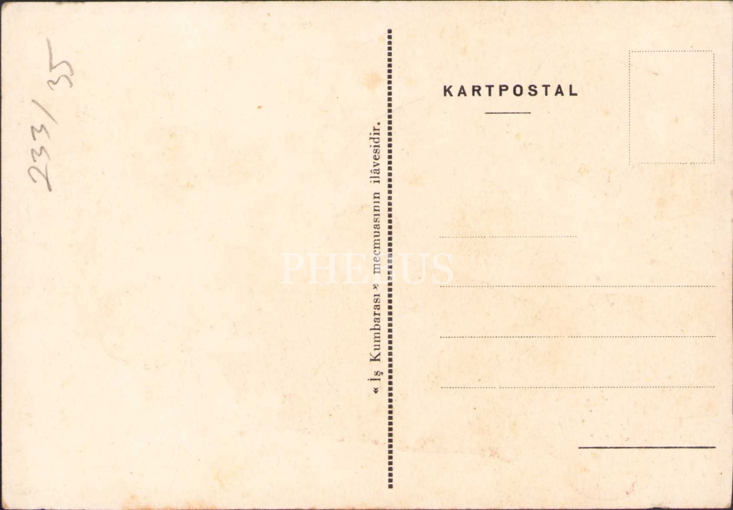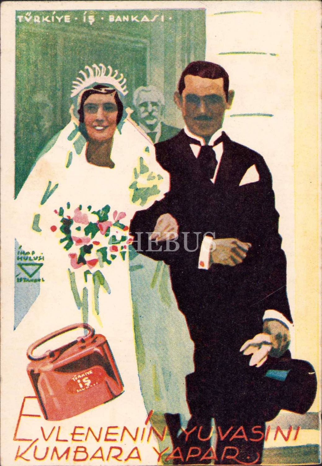 İhap Hulusi tasarımı Türkiye İş Bankası "Evlenenin Yuvasını Kumbara Yapar" Kartpostal, 10x15 cm