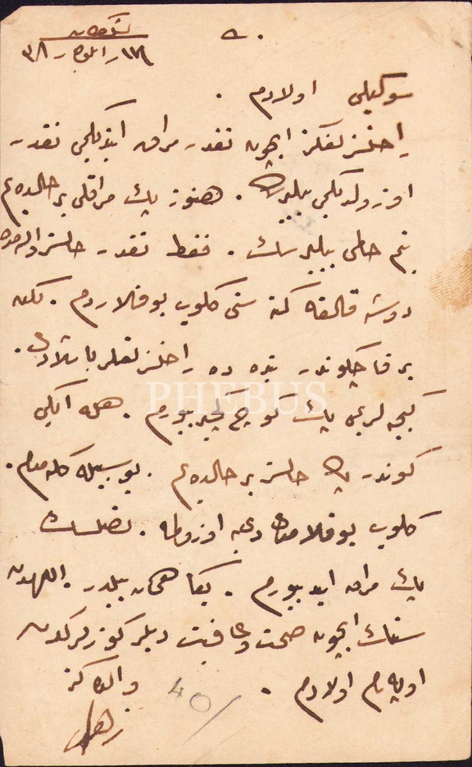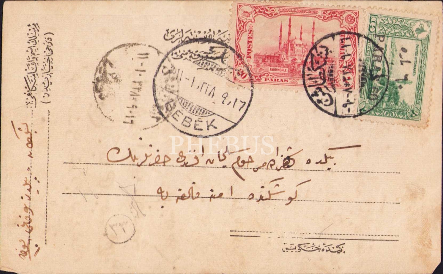 Enver Paşa'nın Kayınpederi Şehzade Selim Süleyman Efendi'nin Bebek'teki köşküne gönderilmiş Osmanlıca Kartpostal, 9x14 cm