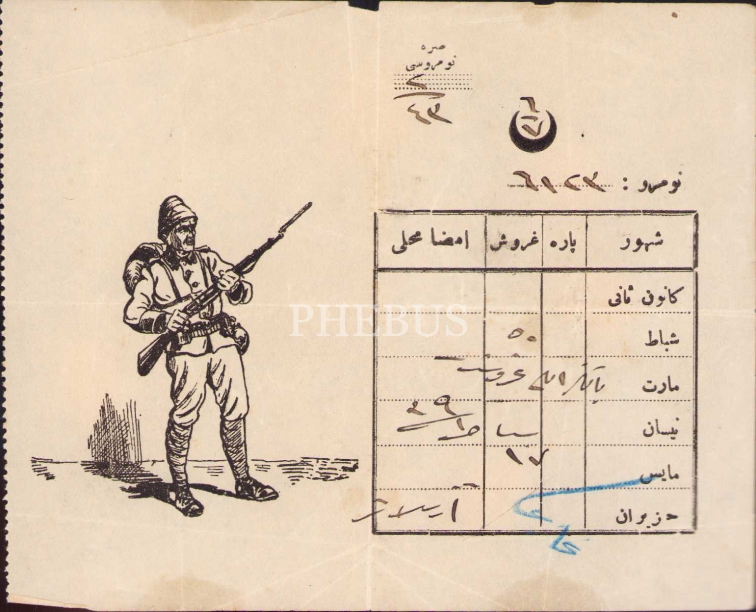 Osmanlıca Askeri Makbuz, 13x10 cm
