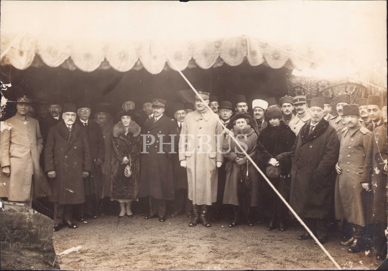 İşgal İstanbul'undan Bir Çadır Önünde Damat Ferit Paşa, Osmanlı Paşaları ve Fransız İşgal Kuvvetleri Komutanı ile Maiyeti fotoğrafı, 25x15 cm