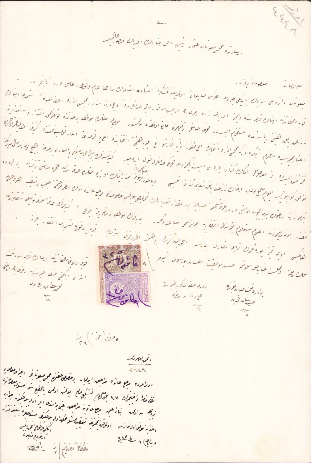 Konya Ermenek'te Maliye Hizmetinde Çalışan Nafiz Bey daha bir mevkiye getirilmesi sebebiyle yazılmış 1909 tarihli Osmanlıca Arzuhal, 25x38 cm