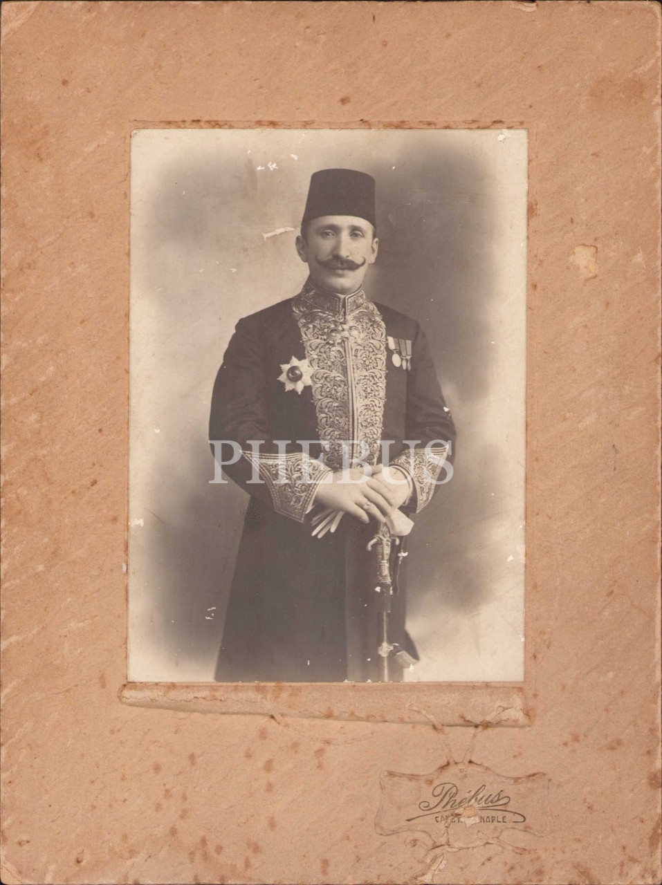 Phebus Fotoğrafhanesi Madalyalı ve Üniformalı Paşa Kabin Fotoğrafı, 10x14 cm