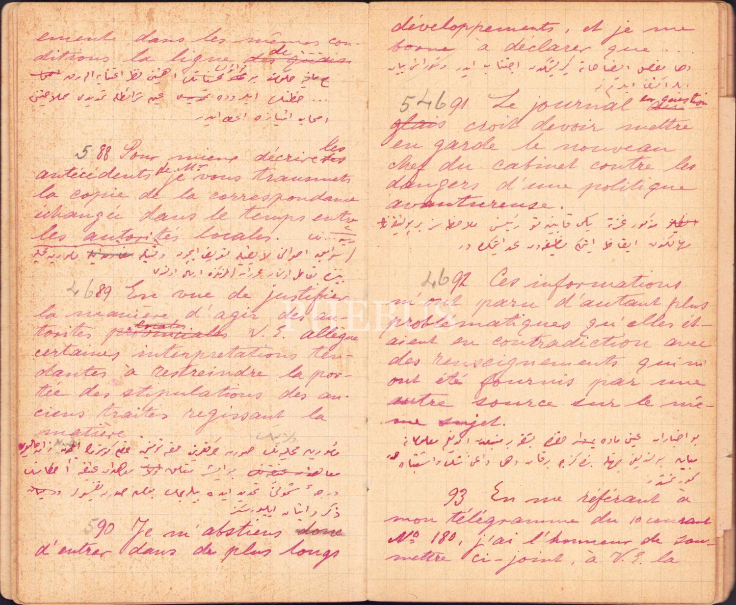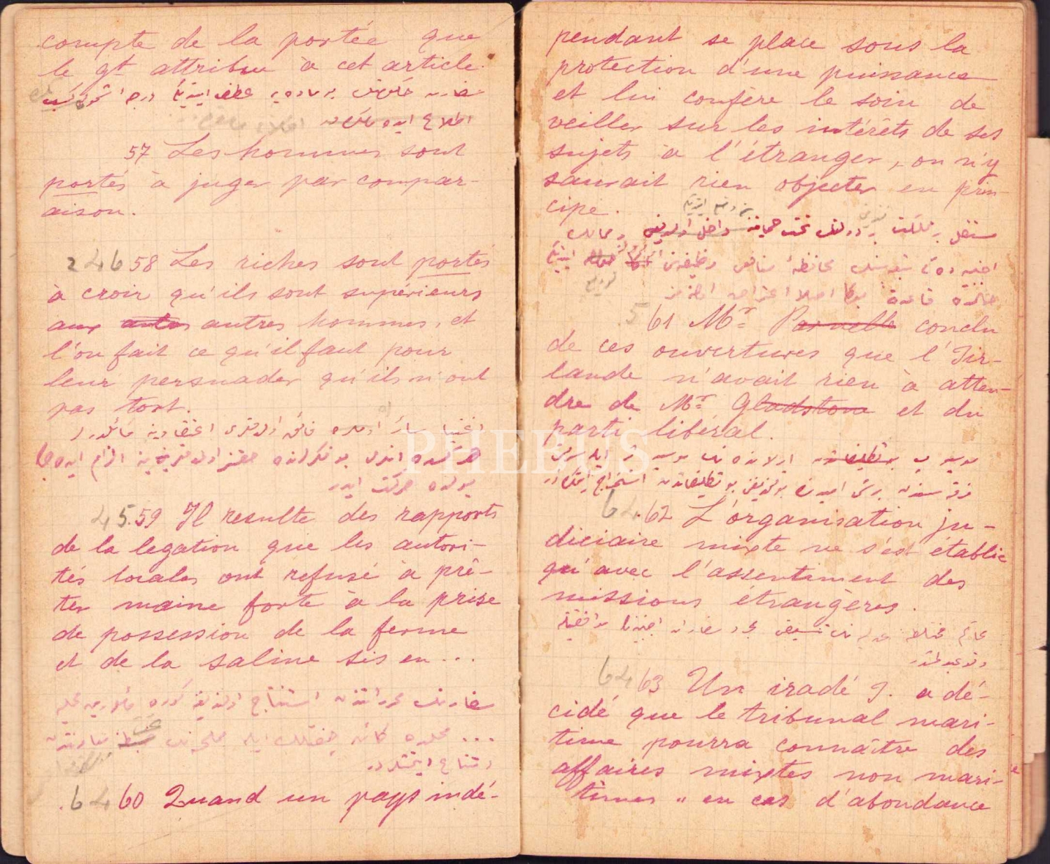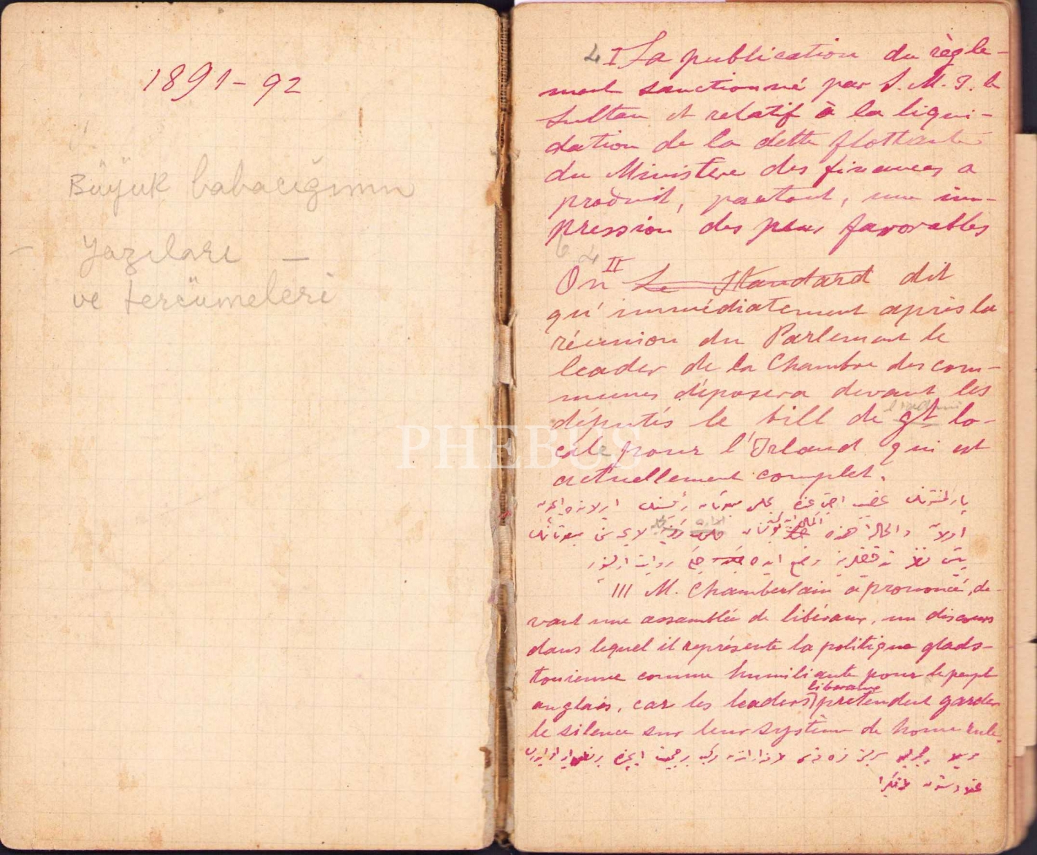 General Pertev Paşa'ya Ait Yazı ve Tercümeleri Havi El Yazması Defter, 44 varak, 8x14 cm