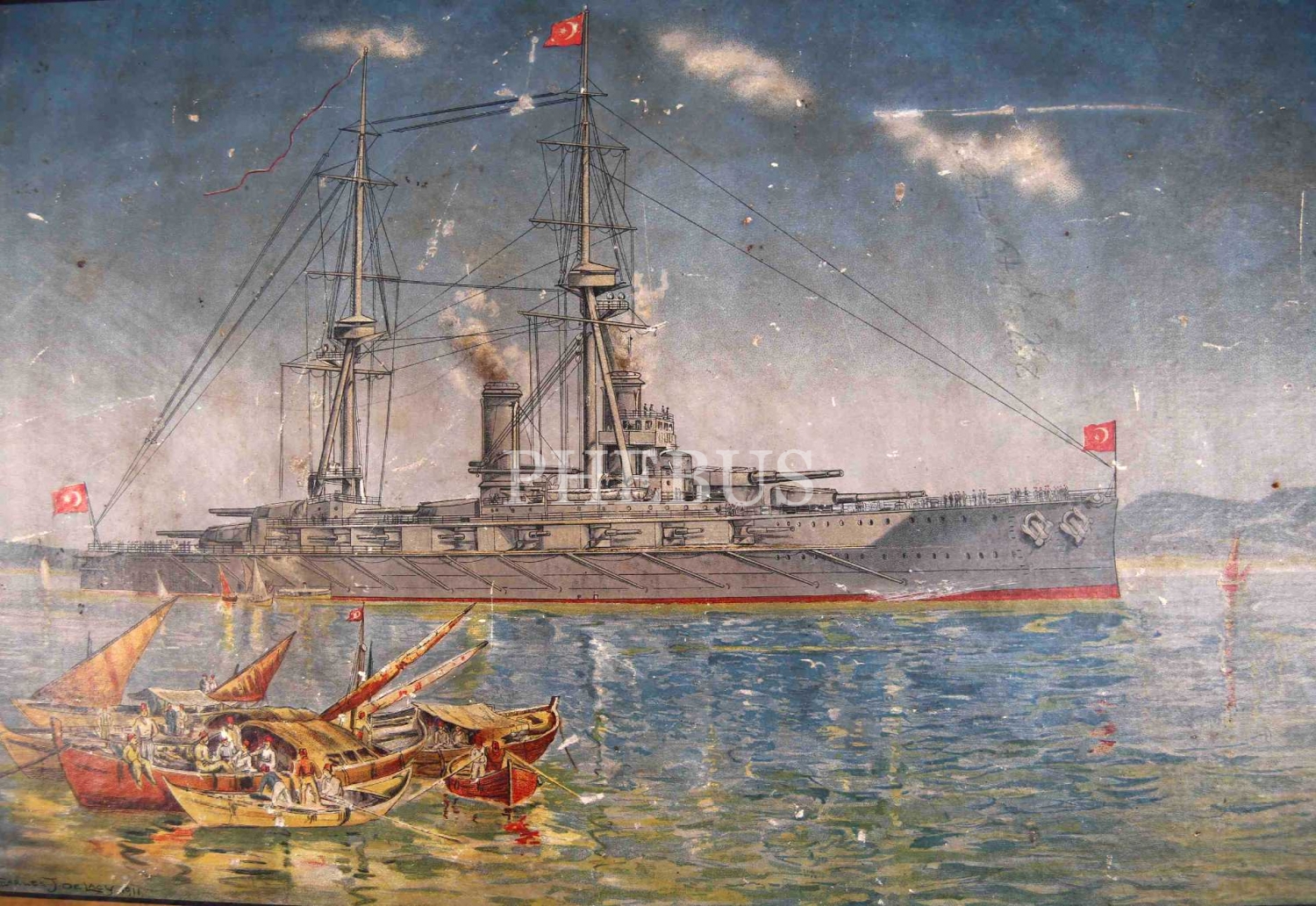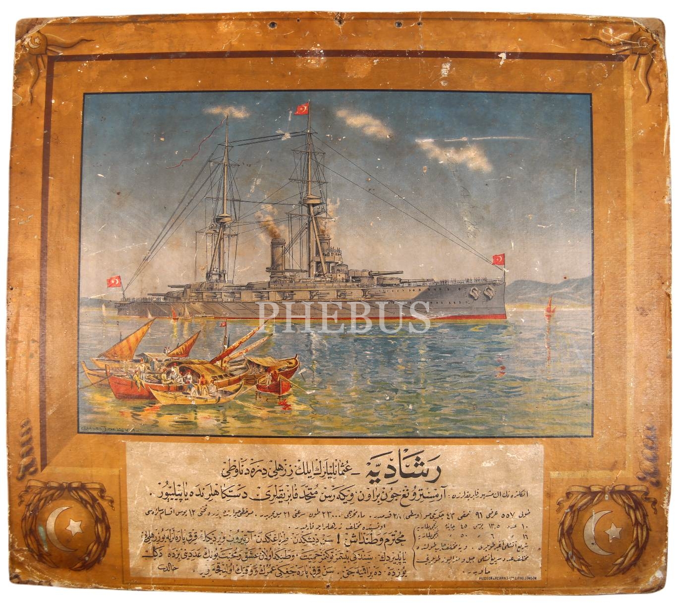 Birinci Cihan Harbi'nde İngilizlerin El Koyduğu Osmanlıların İlk Zırhlı Gemisi Reşadiye Büyük Boy Afişi, Osmanlıca, 56x49 cm