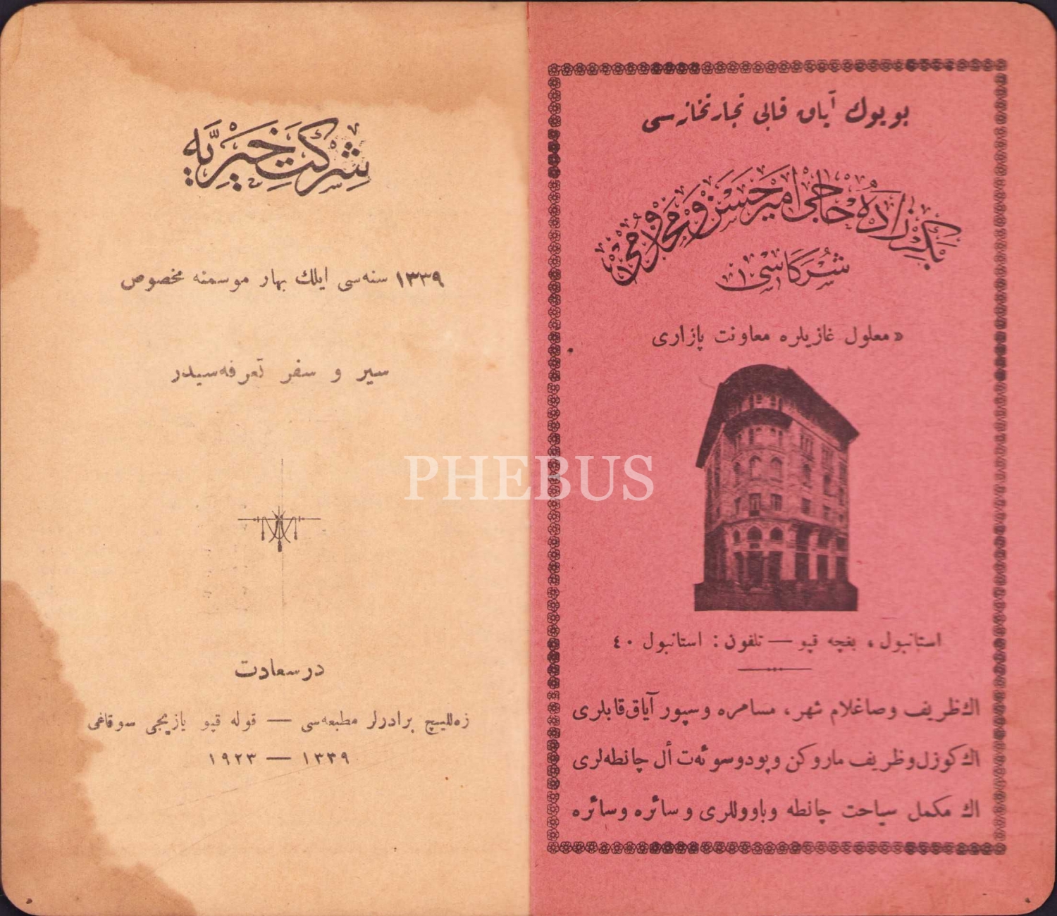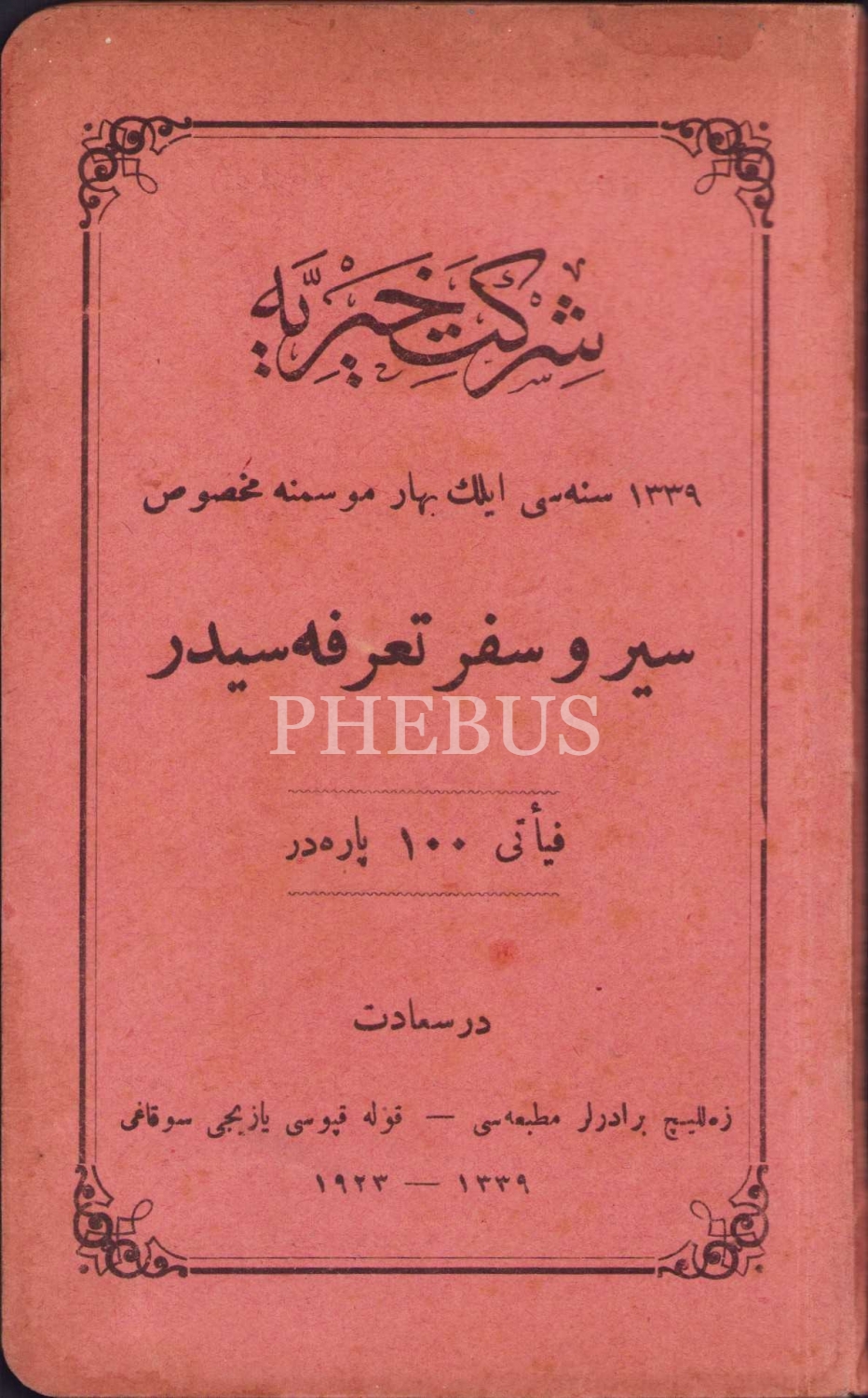 Osmanlıca Şirket-i Hayriye Seyr ü Sefer Tarifesi, İlkbahar 1339, Zelliç Biraderler, 10x16 cm