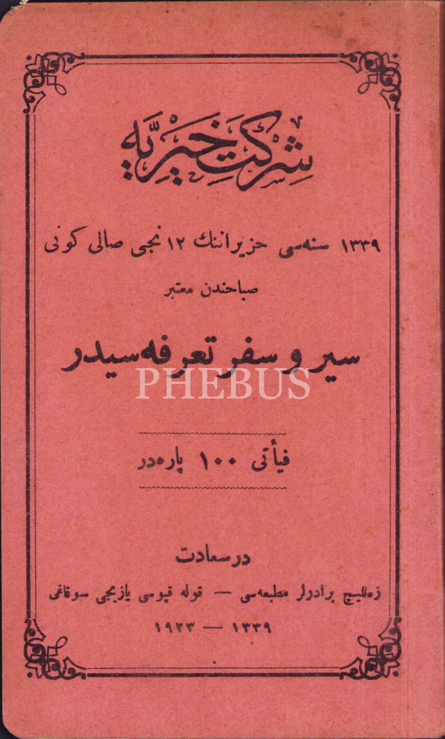 Osmanlıca Şirket-i Hayriye 1339 Haziran Seyr ü Sefer Tarifesisi, 1924, 10x16 cm