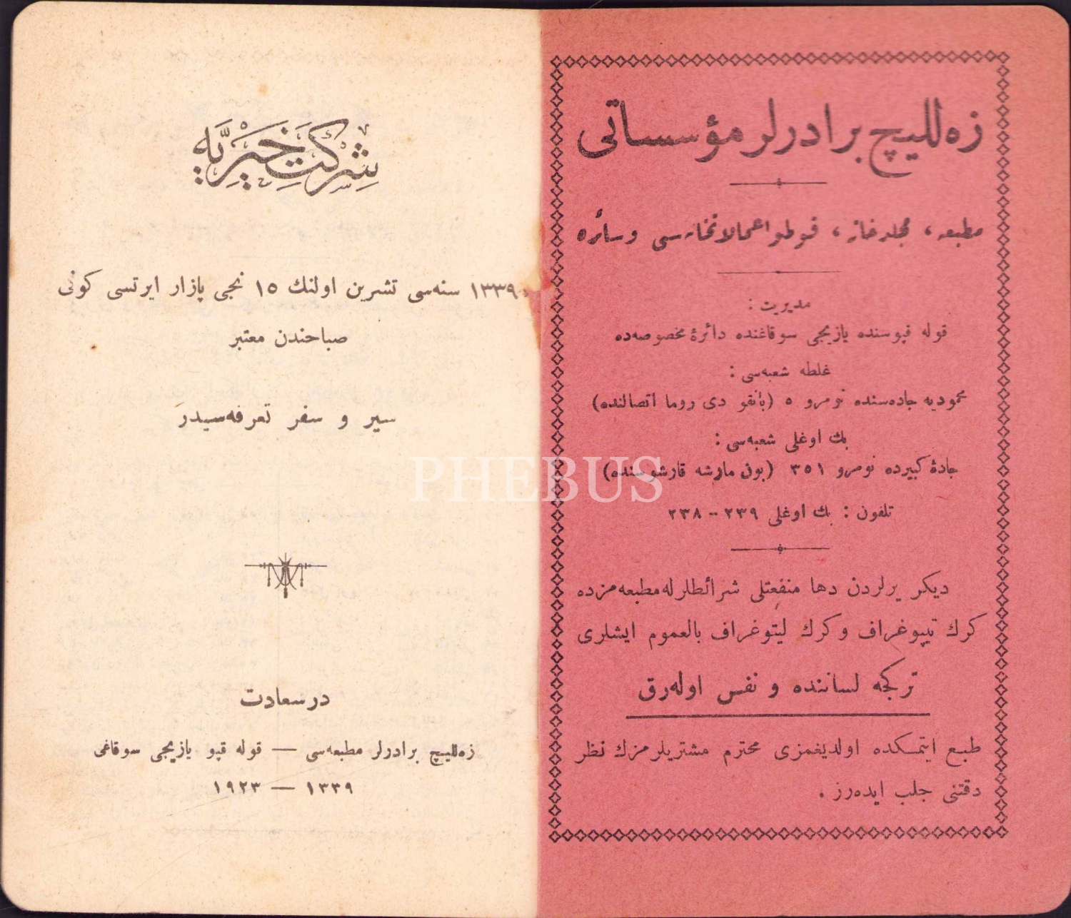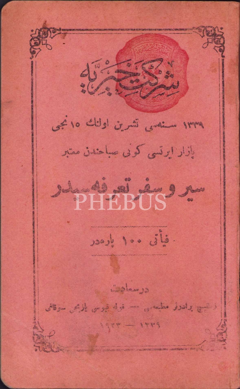 Osmanlıca Şirket-i Hayriye 1339 Senesi Teşrinievvel Seyr ü sefer Tarifesi, 1923 tarihli, 10x16 cm