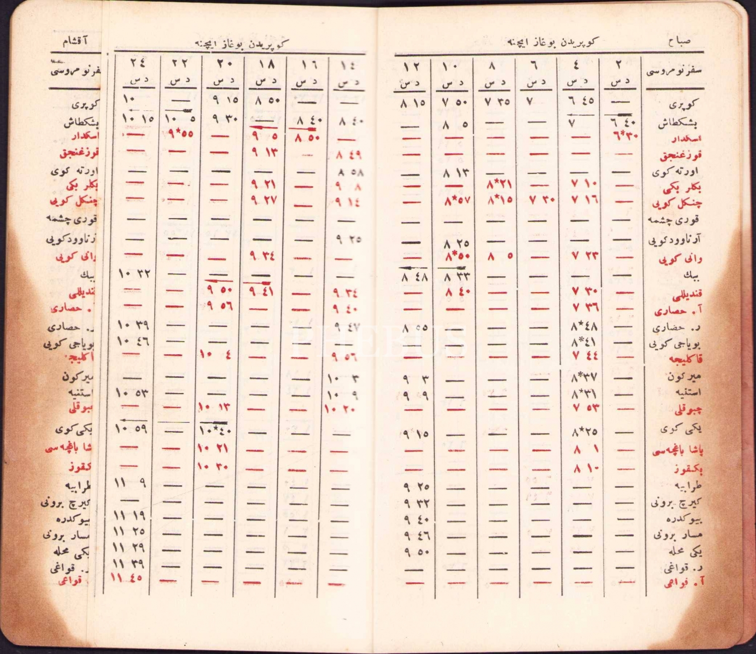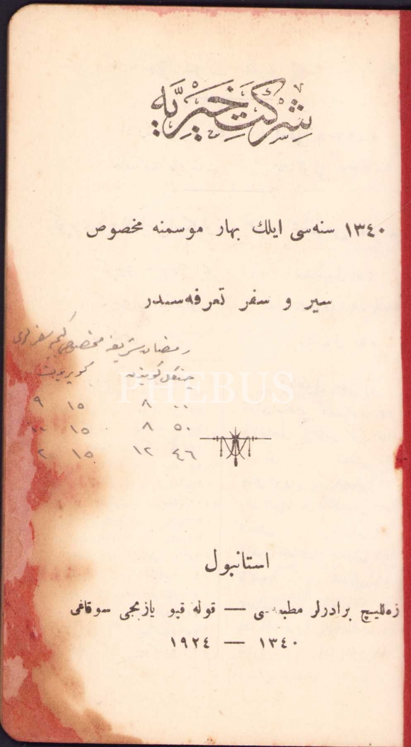 Osmanlıca 1340 Senesi İlk Bahar Mevsimine Mahsus Seyr ü Sefer Tarifesi, 1924 tarihli, 9x15 cm