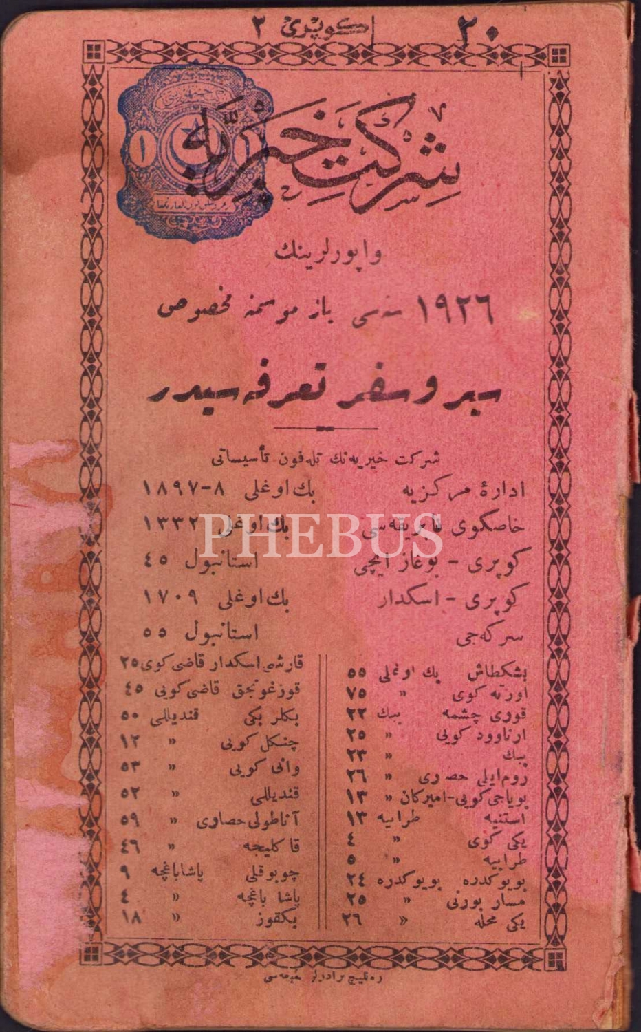 Osmanlıca Şirket-i Hayriye Vapurlarının 1926 Senesi Yaz Mevsimine Mahsus Seyr ü Sefer Tarifesi, Zelliç Biraderler Matbaası, 9x15 cm