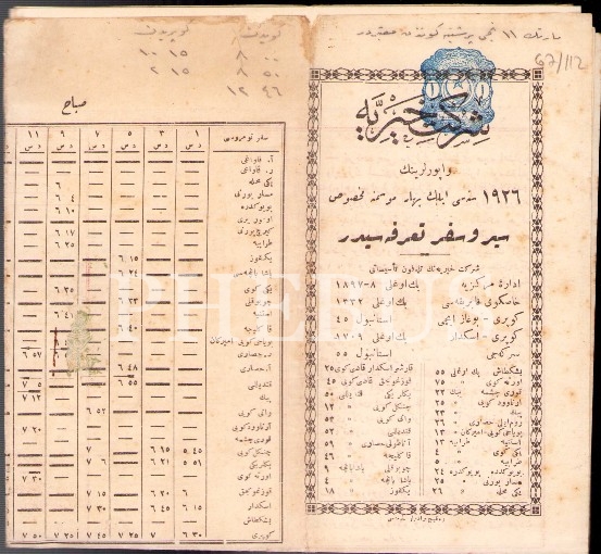 Osmanlıca Şirket-i Hayriye Vapurlarının 1926 Senesi İlk Bahar Mevsimine Mahsus Seyr ü Sefer Tarifesi, Zelliç Biraderler Matbaası, 9x16 cm