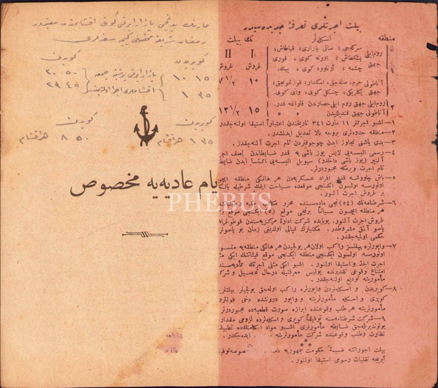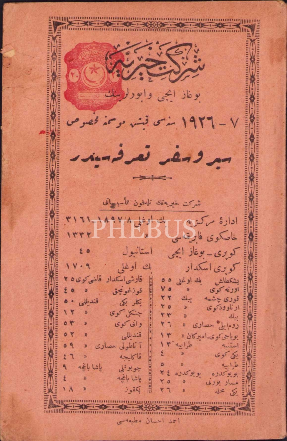 Osmanlıca Şirket-i Hayriye Vapurlarının 1926 Senesi Kış Mevsimine Mahsus Seyr ü Sefer Tarifesi, Ahmed İhsan Matbaası, 10x15 cm