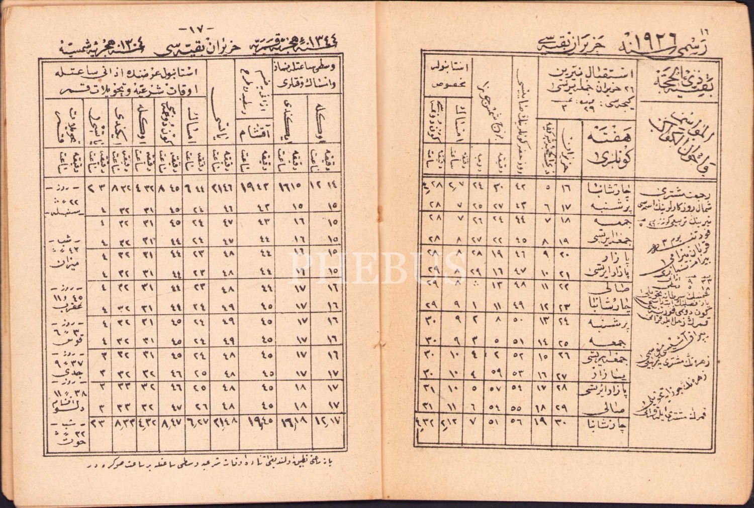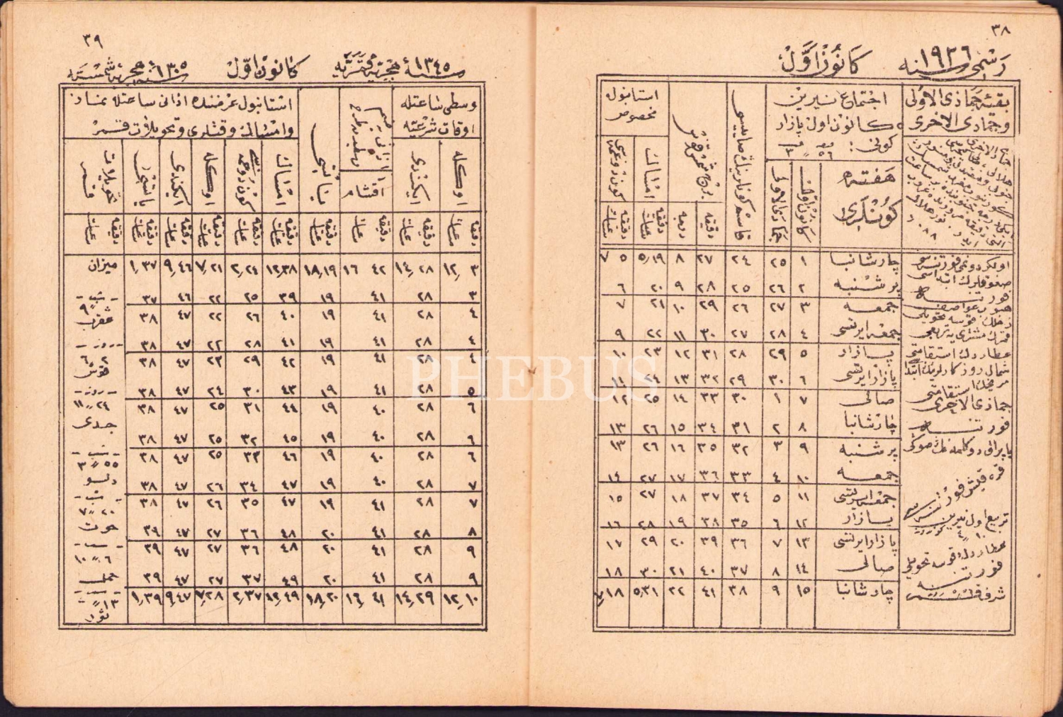 Osmanlıca Türkiye Cumhuriyeti Takvim-i Evkat [Vakitler Takvimi], 1926-1927, 64 sayfa, 10x14 cm