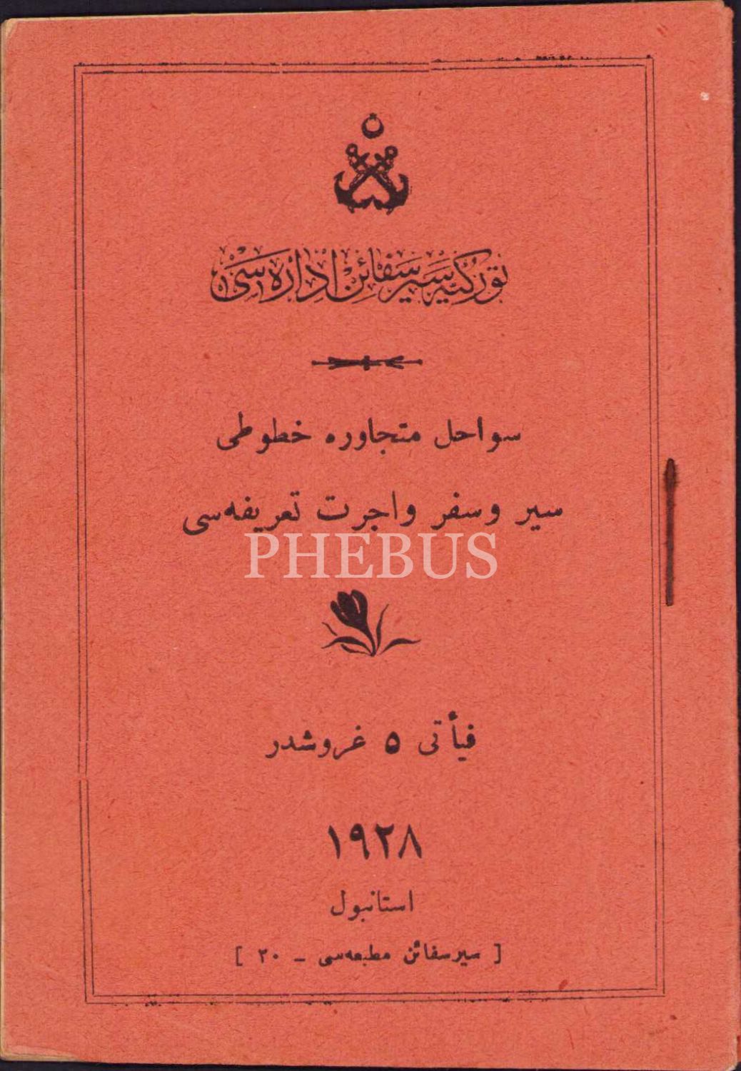 Türkiye Cumhuriyeti Sevahil-i Mütecavere Vapurlarının 1928 tarihli Seyr ü Sefer Tarifesi, 9x13 cm