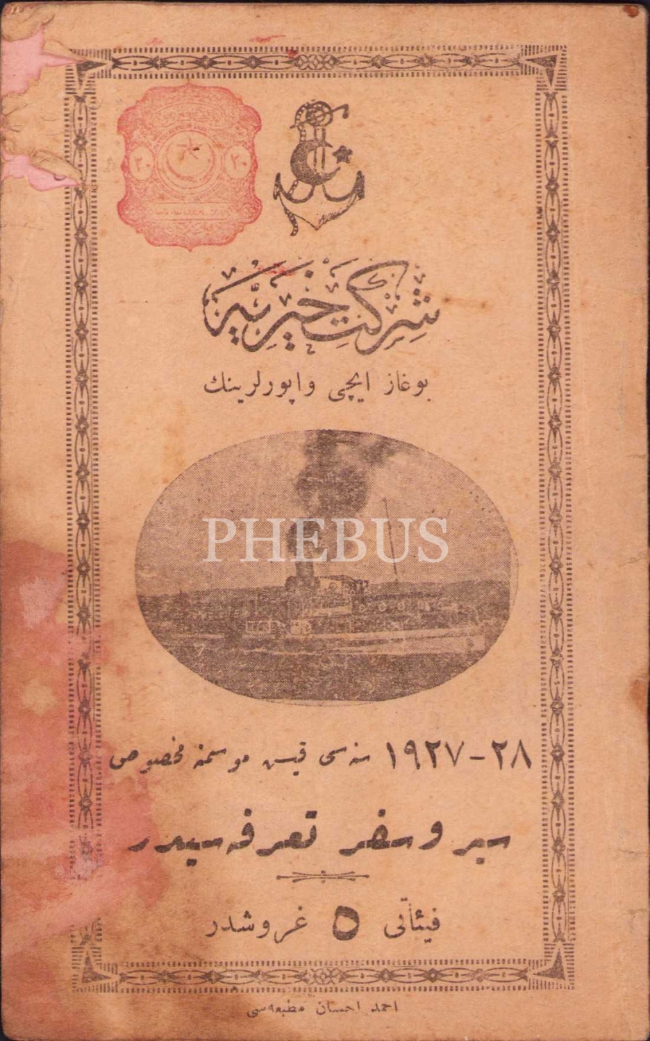 Osmanlıca Şirket-i Hayriye Boğaz İçi Vapurlarının 1927-28 Senesi Kış Mevsimine Mahsus Seyr ü Sefer Tarifesi, 9x17 cm