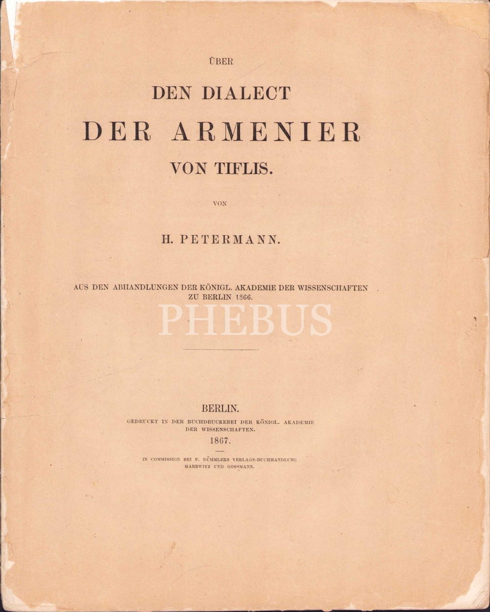 Über Den Dialect Der Armenier Von Tiflis [Tiflis Ermenilerinin Şiveleri], H. Petermann, Berlin, 1867 tarihli, 87 sayfa, 22x28 cm