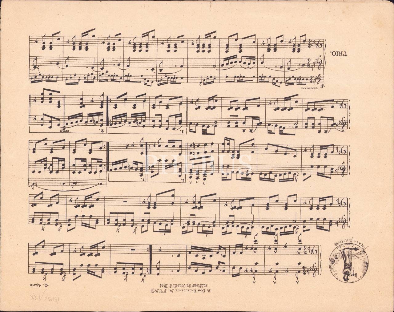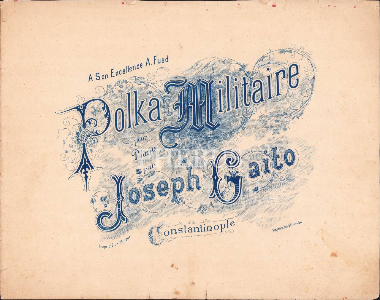 Constantinople Baskı Nota, Polka Militaire Joseph Caito, Andreades Yayını, eksik haliyle, 36x28 cm