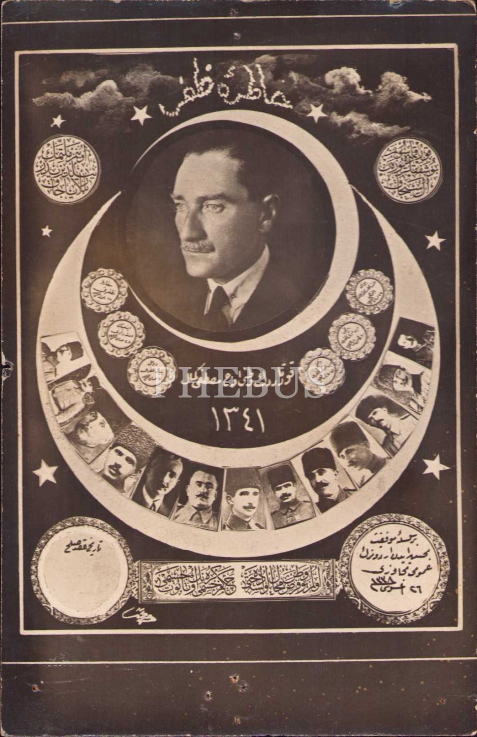Mustafa Kemal Atatürk ve Kurtuluş Savaşı Kumandanlarının Fotoğrafları Bulunan Hatıra-yı Zafer Kartpostalı, 1341 tarihli, 9x14 cm