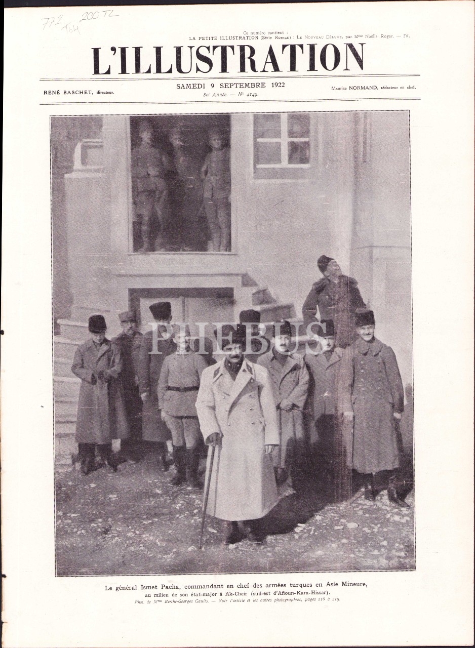 Fransızca L'Illustration Dergisi, Kapak: İsmet Paşa, 9 Eylül 1922 tarihli, 29x38 cm