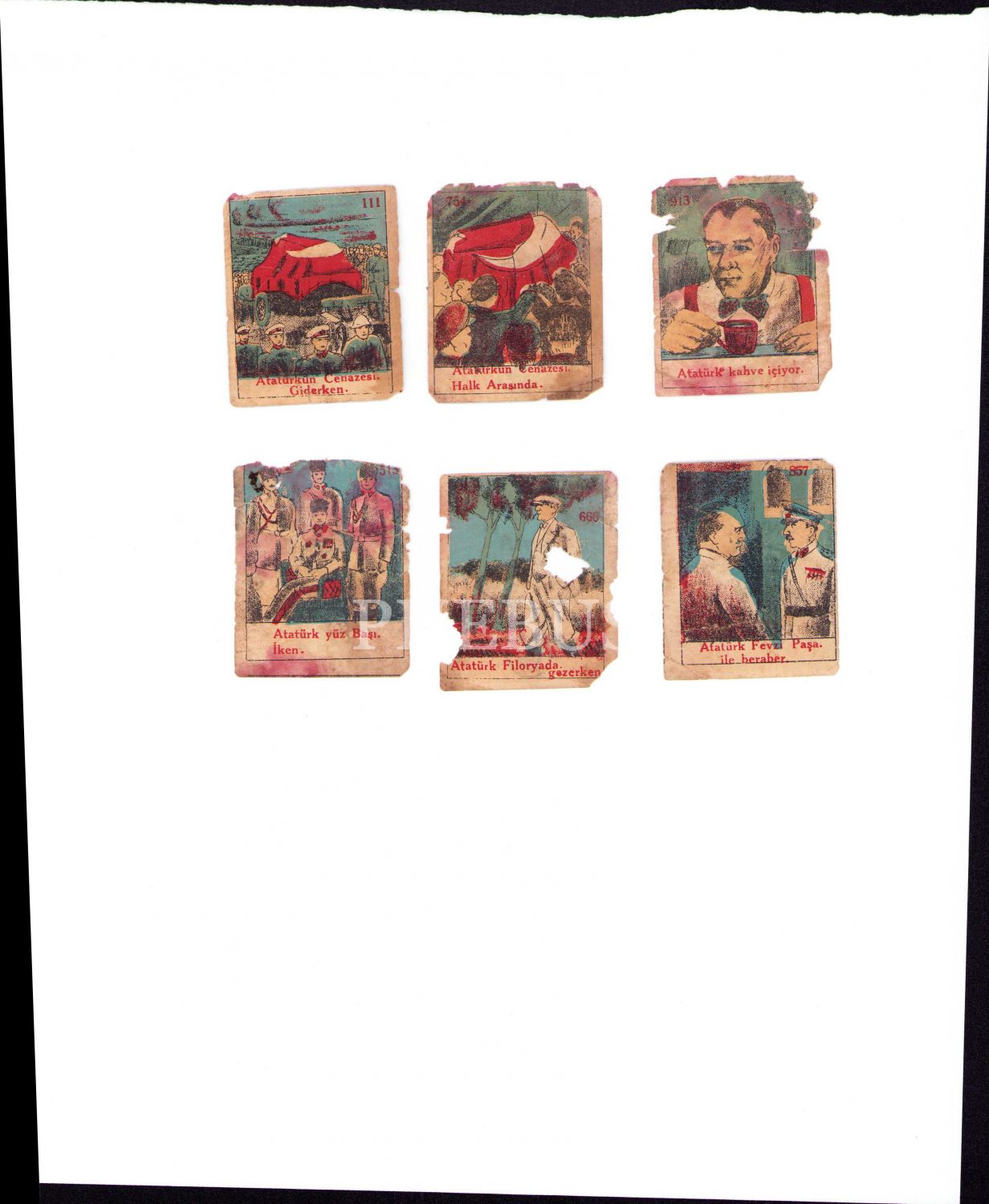 Mustafa Kemal Atatürk Temalı 6 Adet Ata İnanç Çikolata Şekerleme ve Çiklet Fabrikası Kartları, her biri 5x6 cm