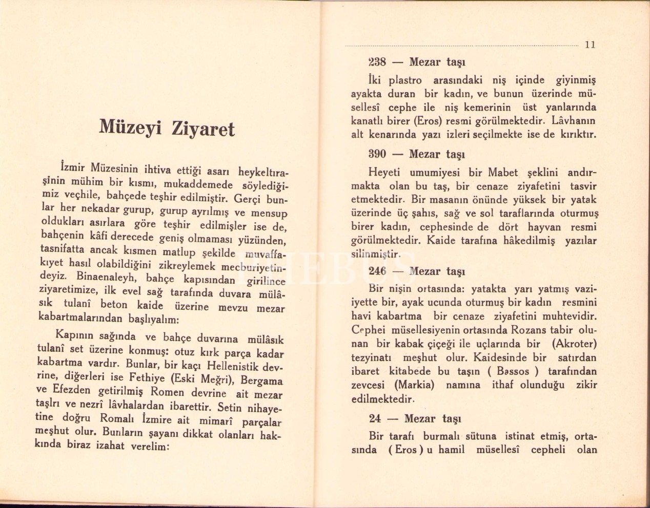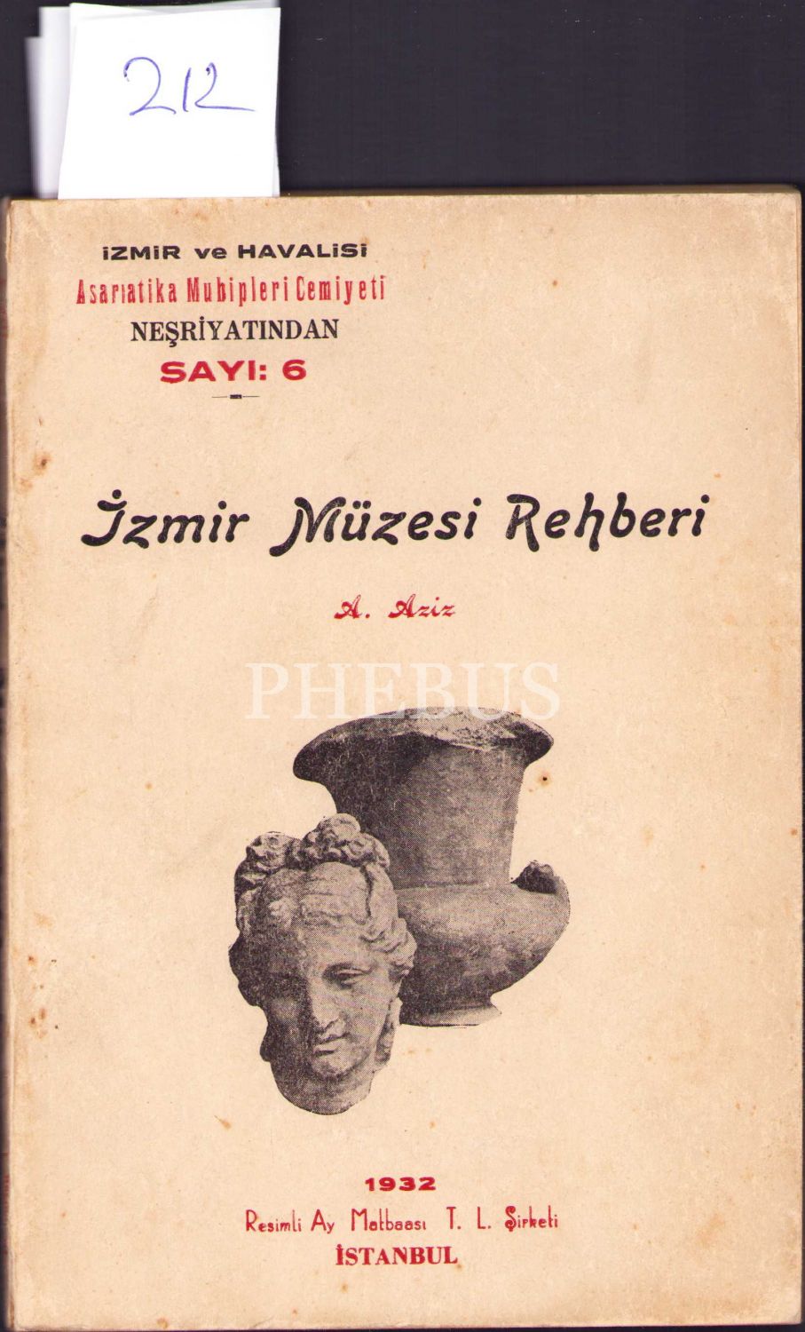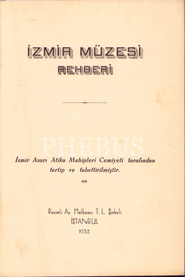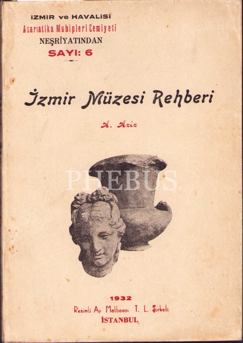 İzmir Müzesi Rehberi, A. Aziz, İzmir ve Havalisi Asar-ı Atika Muhipleri Cemiyeti Neşriyatı'ndan, Sayı:6, 1932, Resimli Ay Matbaası, İstanbul, 96 sayfa+Resimli, 14x20 cm