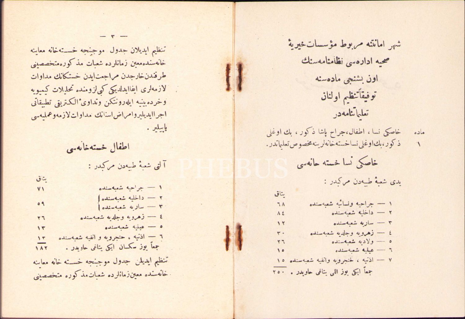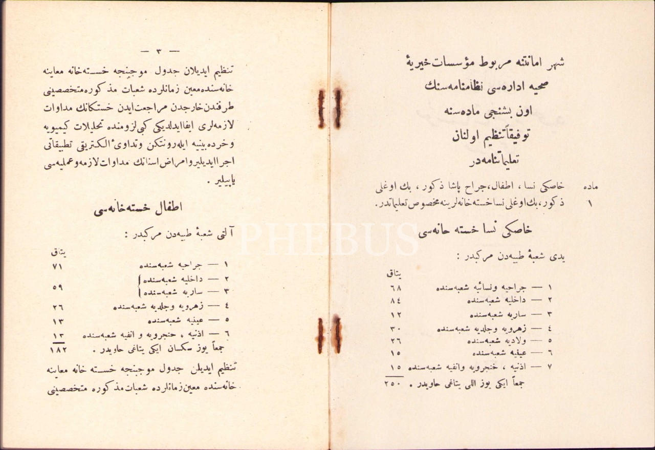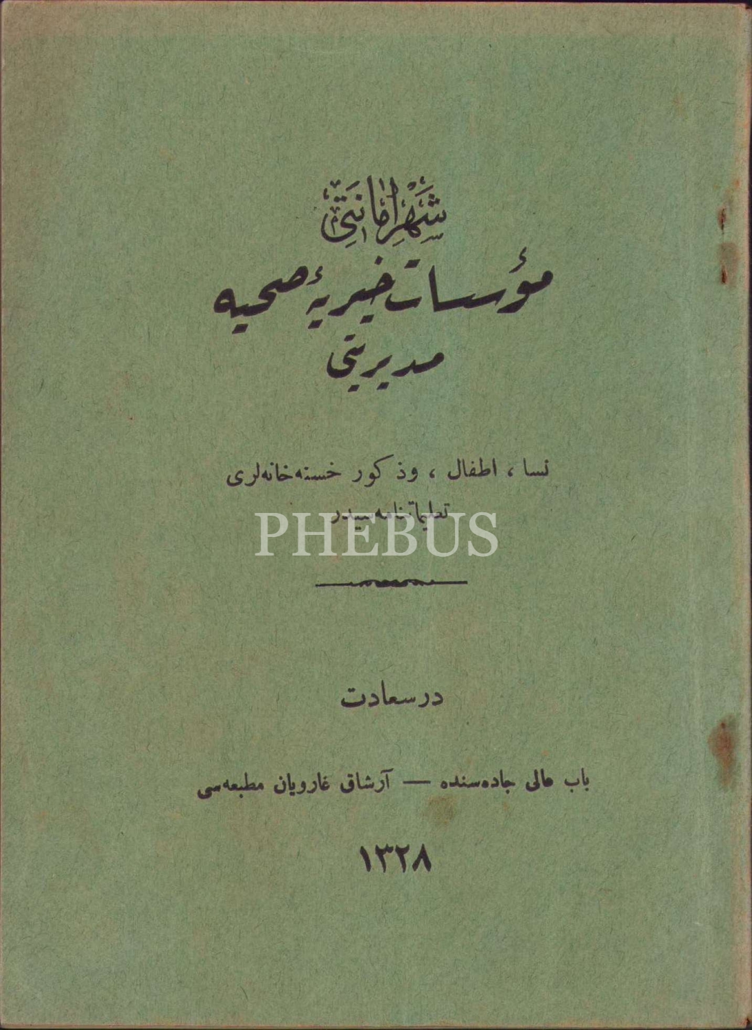 Osmanlıca Şehremaneti Müessesat-ı Hayriye-yi Sıhhiye Müdiriyeti, Nisa [Kadın], Etfal [Çocuk] ve Göz Hastalıkları Talimatnamesi], Dersaadet, Arşak Garoyan Matbaası, 1328 tarihli, 91 sayfa, 12x17 cm
