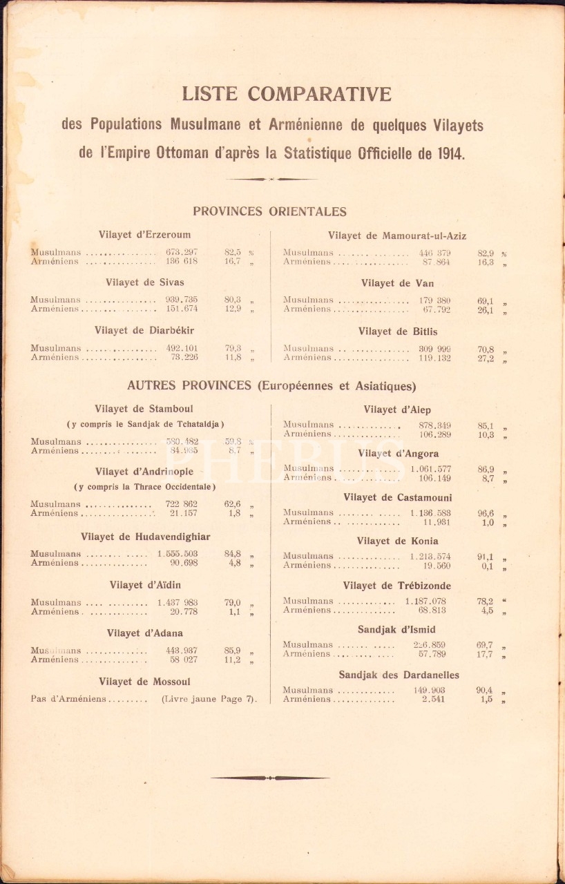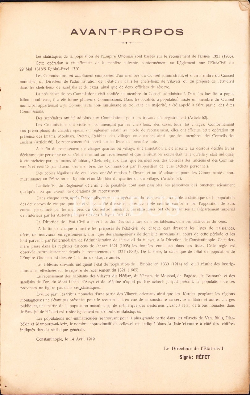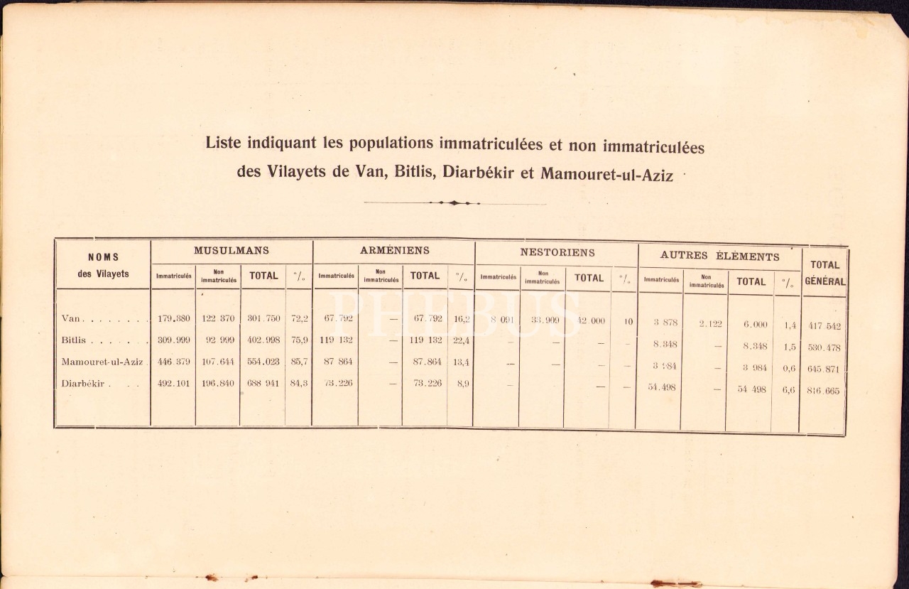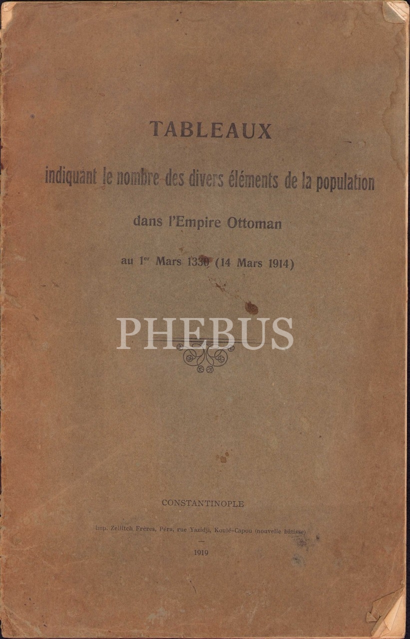 Fransızca 1914 Tarihli Osmanlı Nüfus Tablosu, Constantinople Baskı, Zelliç Biraderler Matbaası, 13 sayfa, 21x34 cm