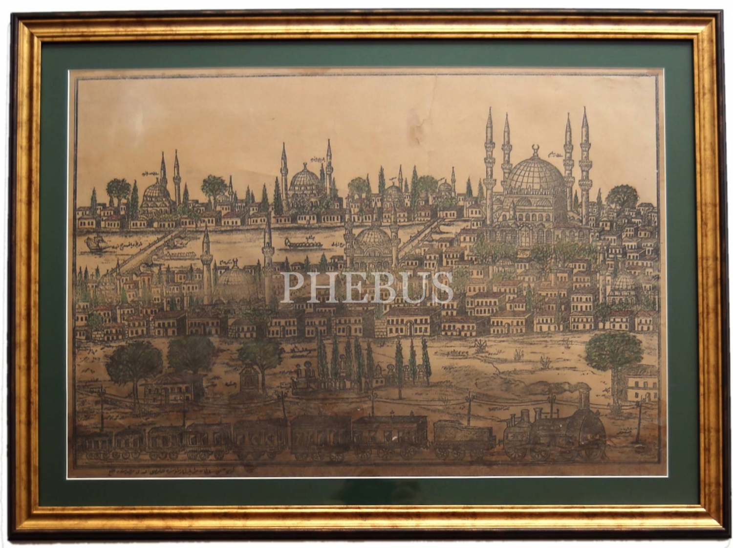 Taş Baskı Büyük Boy Edirne Şehir Manzarası Gravürü, Hulusi Efendi Matbaası'nda Basılmış, çerçeveli, 70x50 cm