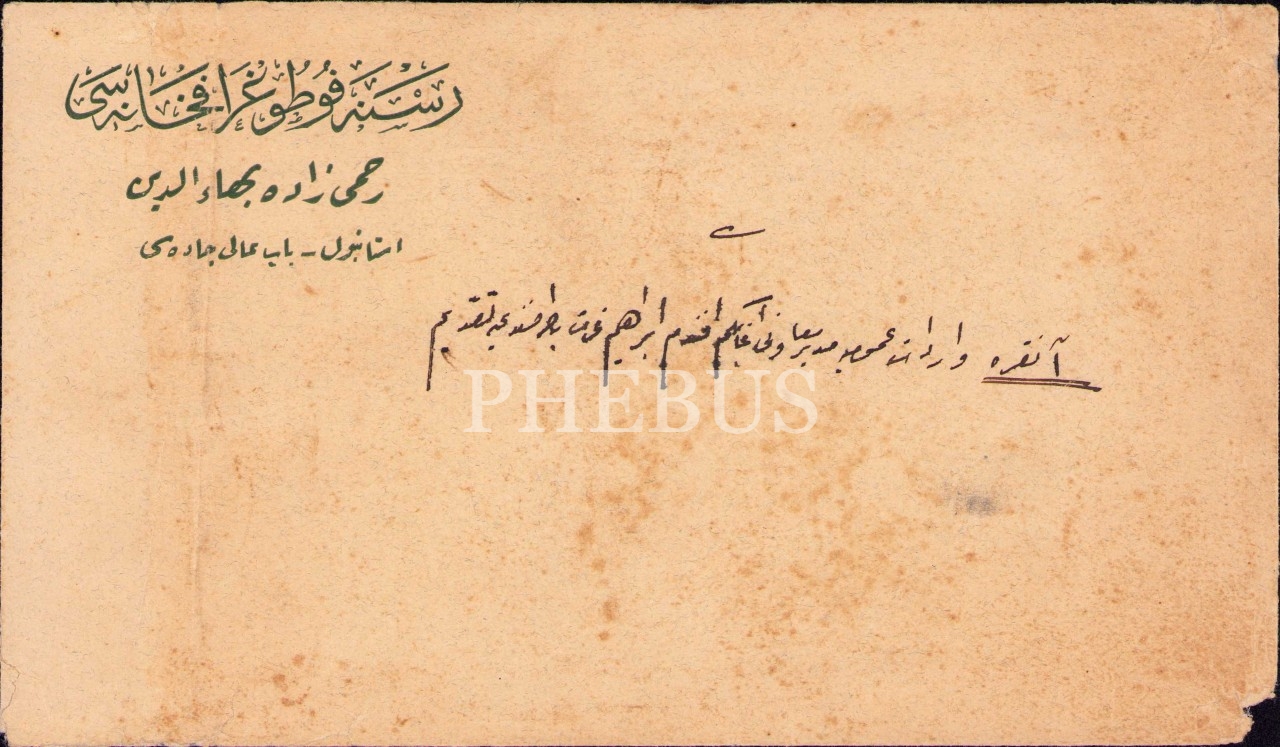 Osmanlıca Resne Fotoğrafhanesi Rahmizade Bahaeddin İstanbul Antetli Zarf, 26x15 cm