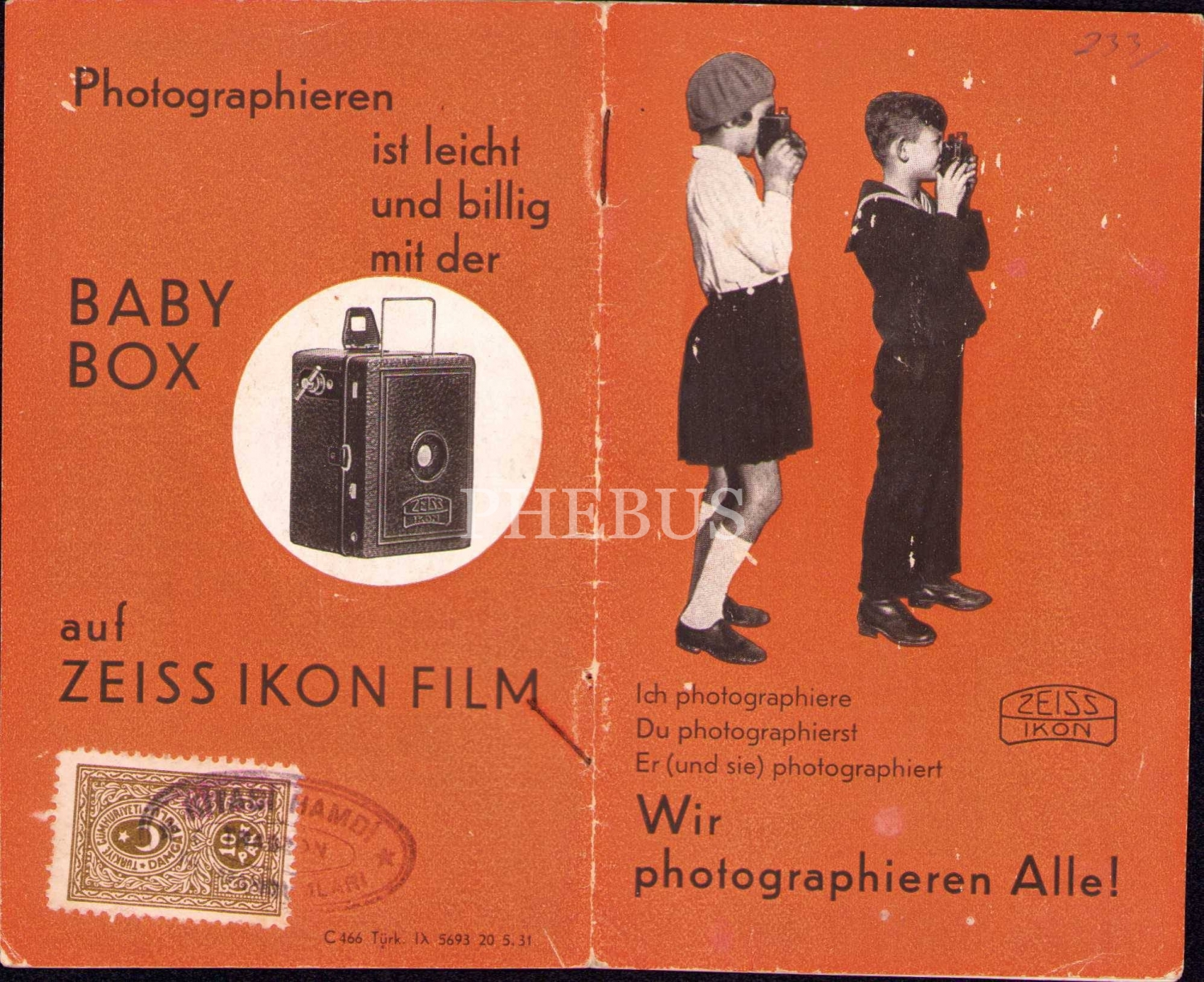 Zeiss Ikon Fotoğraf Makinası ve Dürbünleri, Kodak Film, Ferrania Filim ve Kağıtları Tanıtım Broşürlerinden oluşan lot, 26 parça, muhtelif ebatlarda