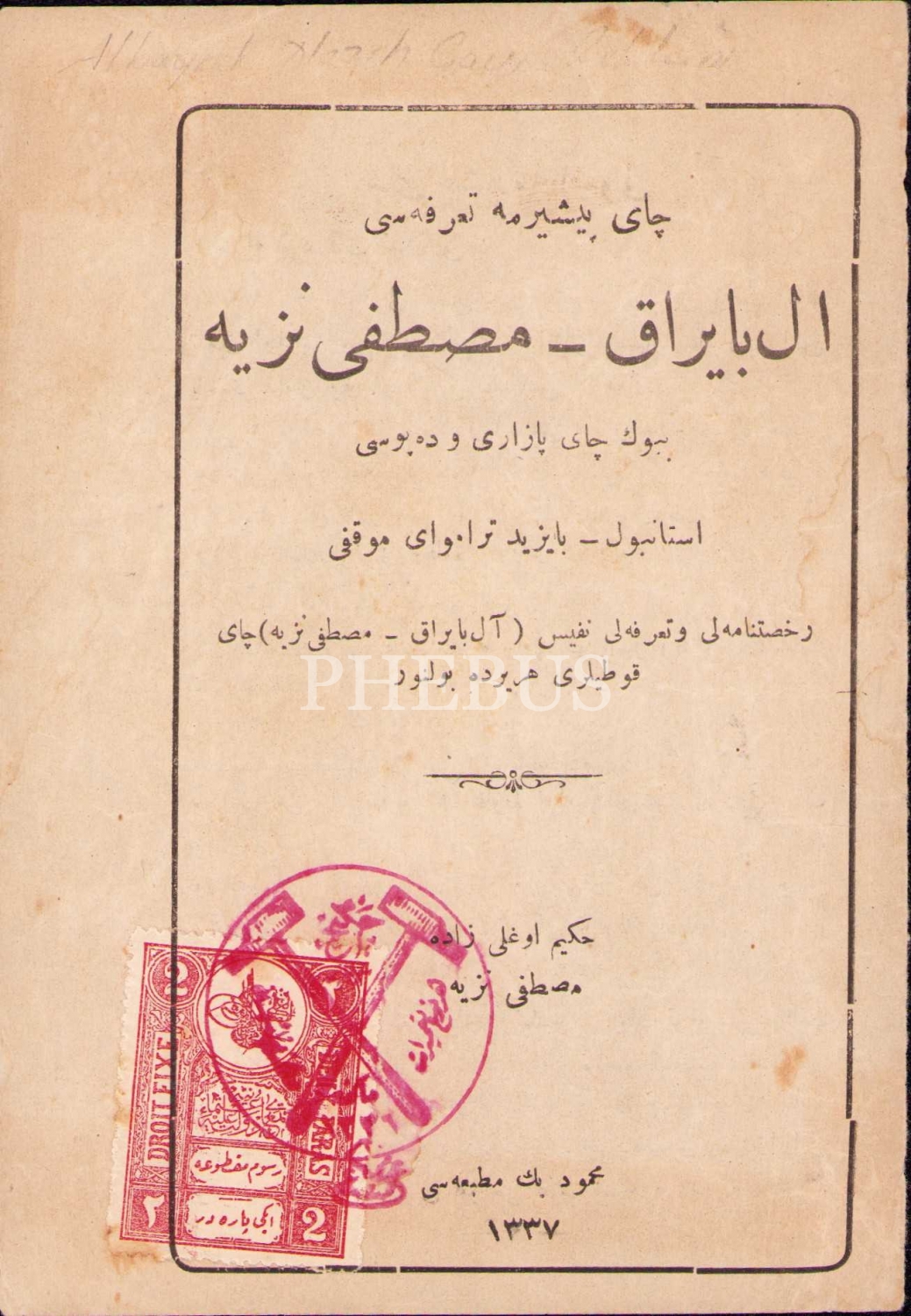 Osmanlıca Albayrak Mustafa Nezihi Büyük Çay Pazarı ve Deposu Çay Pişirme Usulü Tarifi, 1337 tarihli, Mahmud Bey Matbaası, 11x16 cm