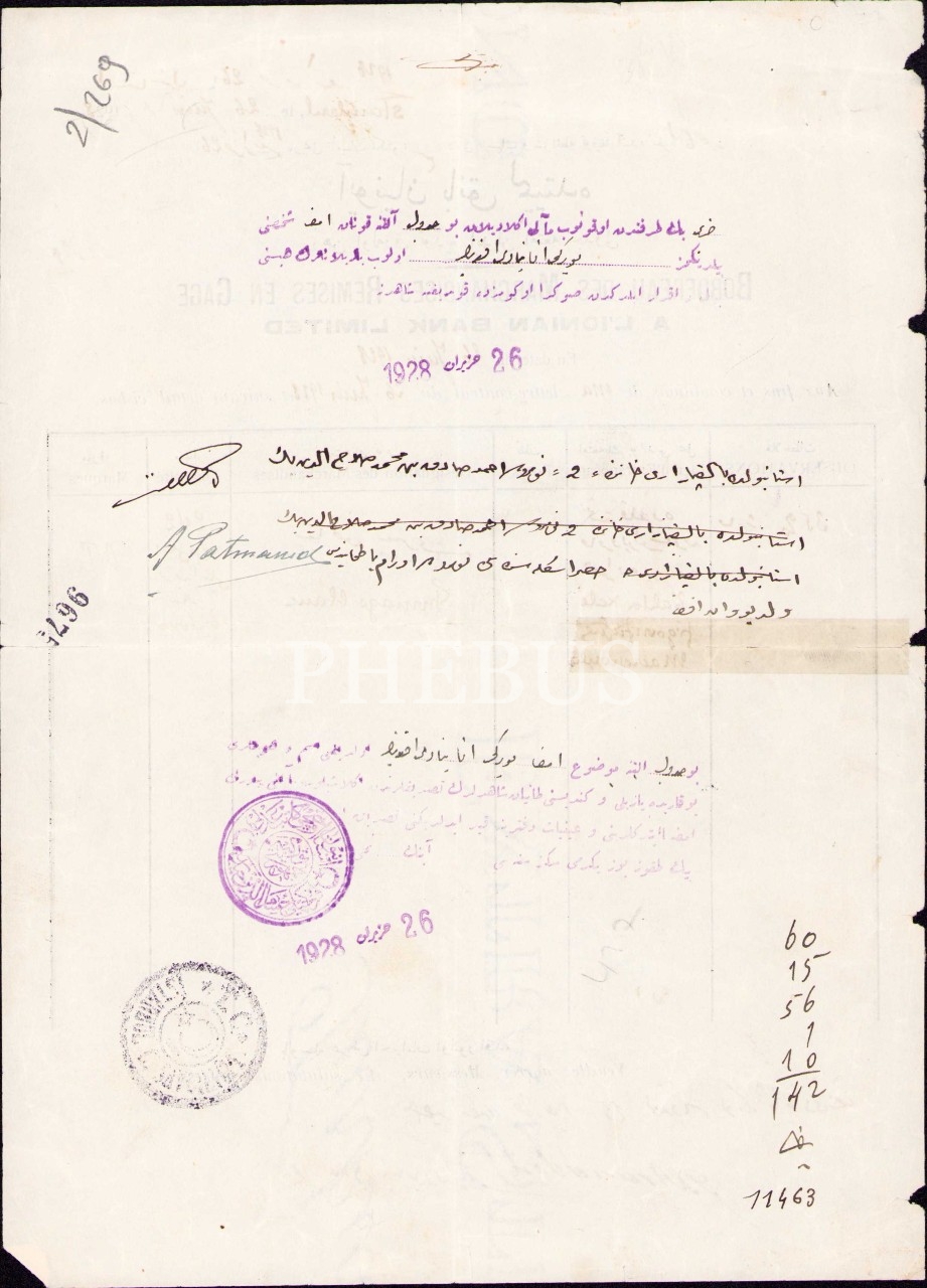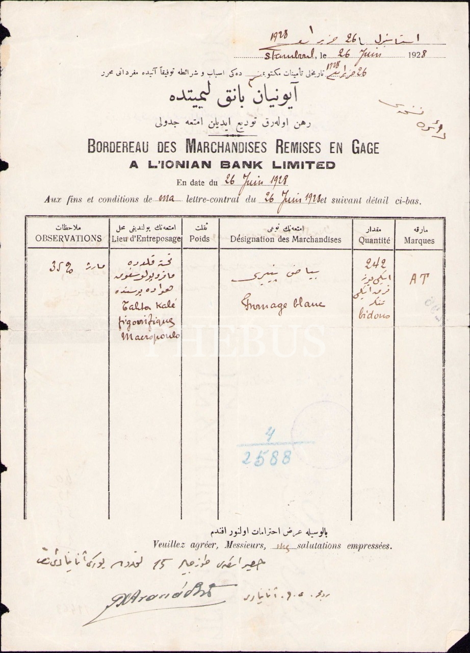 Osmanlıca ve Fransızca Union Bankası Antetli Fatura, 1928 tarihli, 21x30 cm