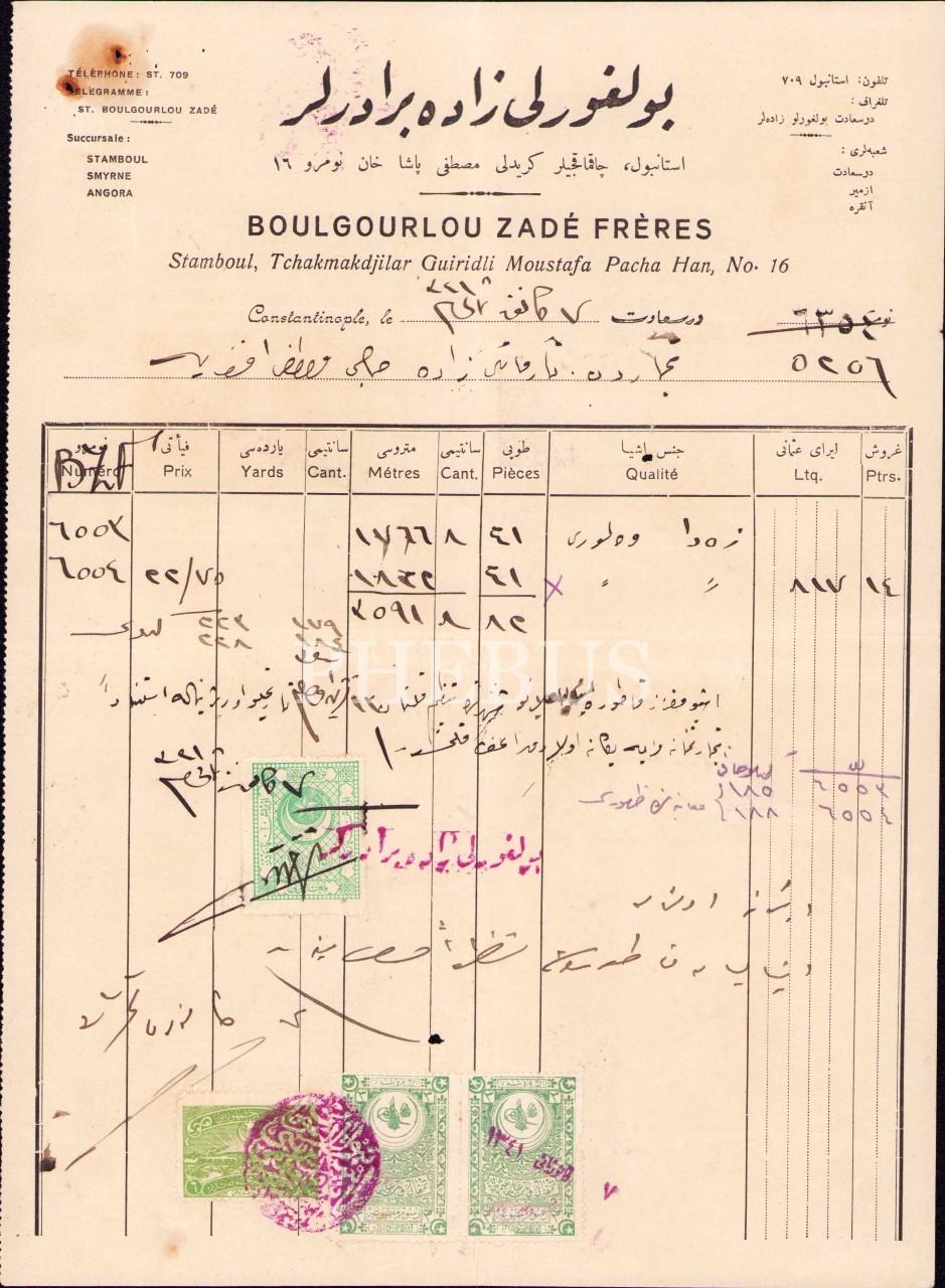 Osmanlıca ve Fransızca Bulgurluzade Freres Antetli Fatura, 1341 tarihli, 20x28 cm