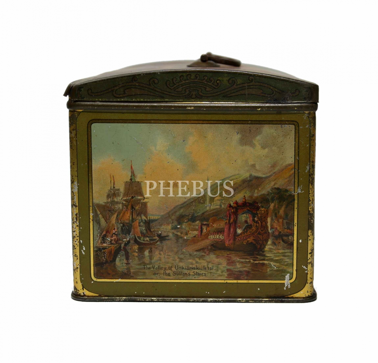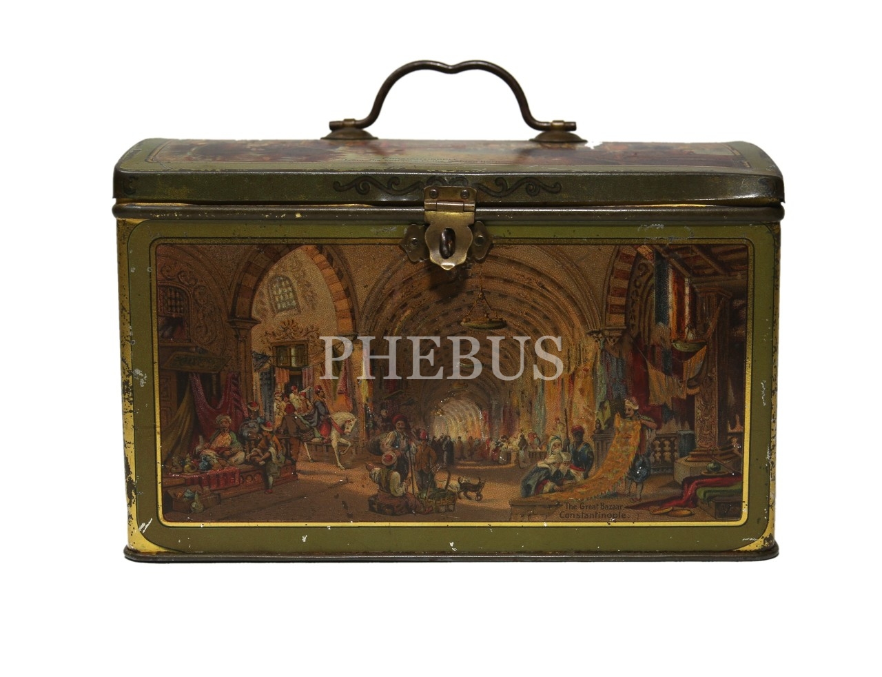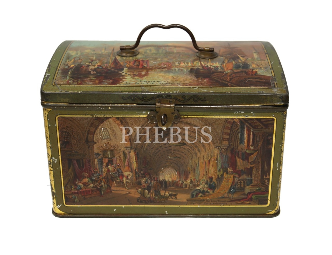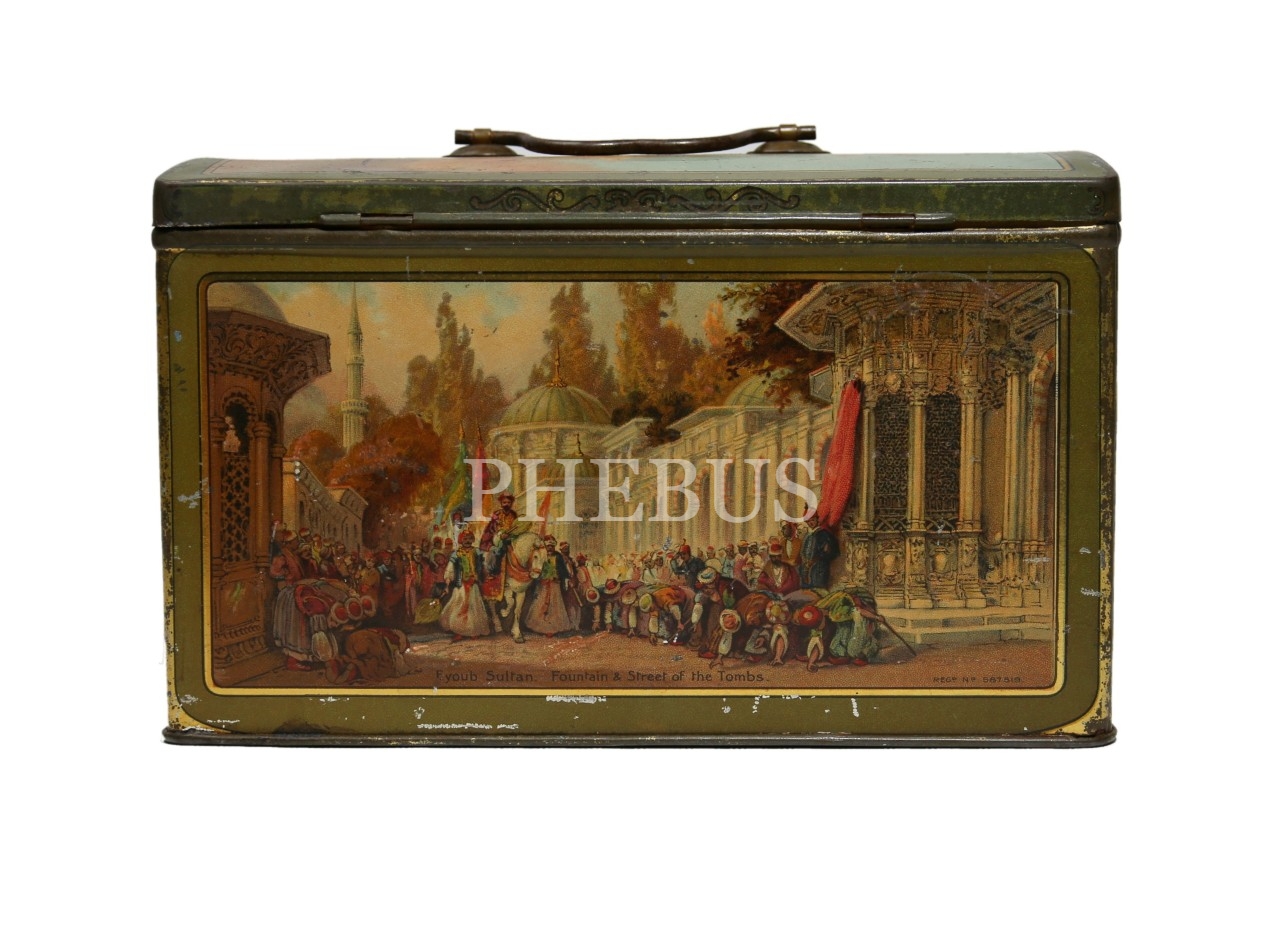 Haliç, Kapalıçarşı, Eyüp Sultan tasvirleri bulunan Constantinople teneke kutu, 19x13x11 cm