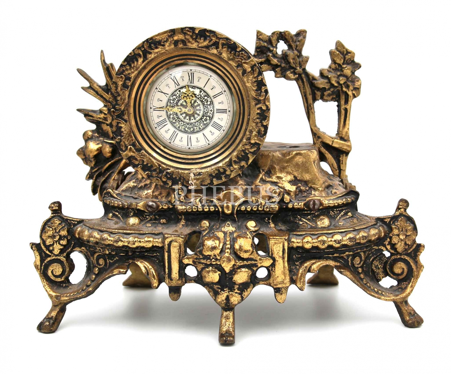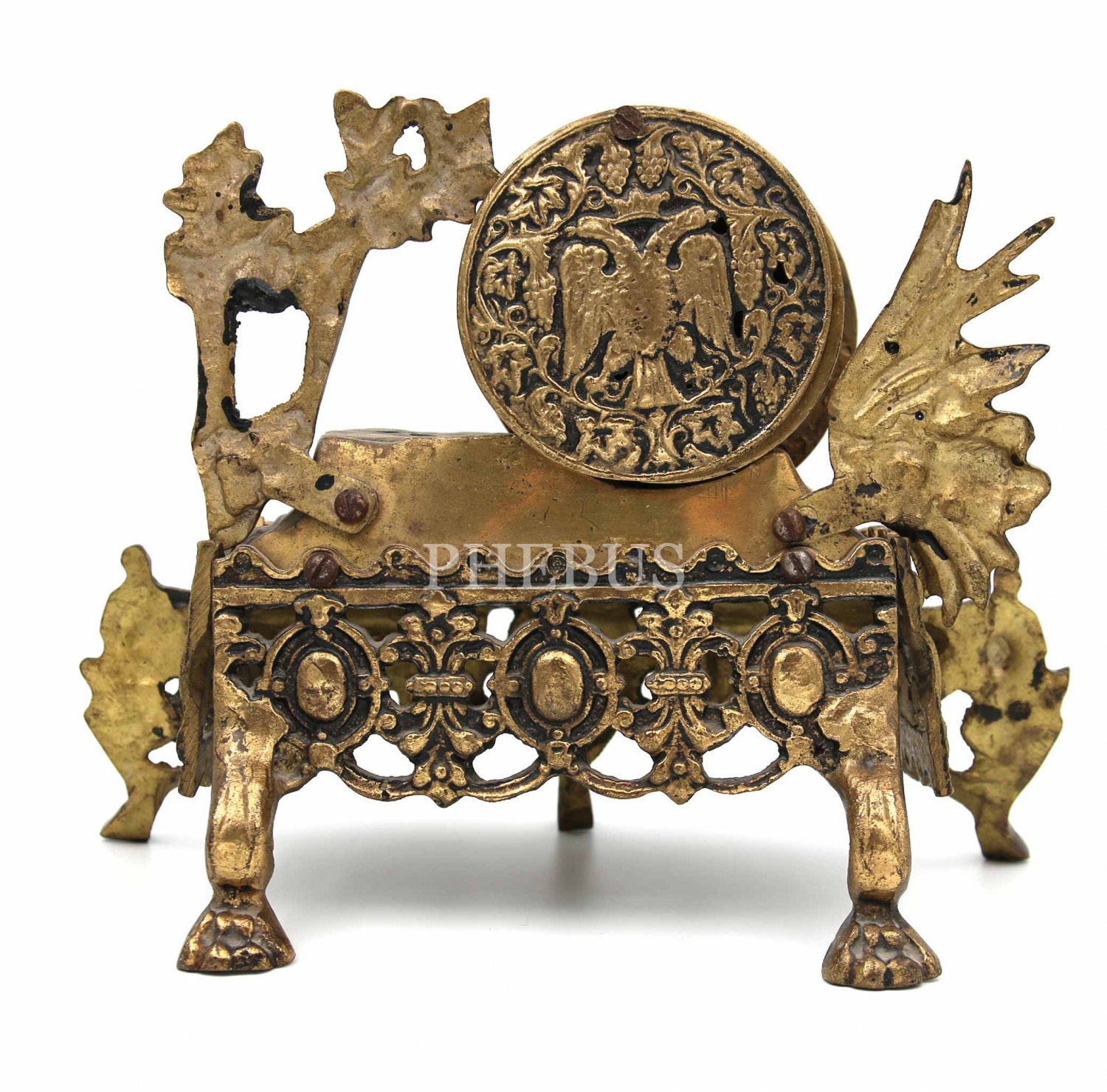 Batı Almanya Yapımı Pirinç Konsol Saati, Gebr Hauser Mercedes marka, kurmalı ve çalışır durumda, 30x24 cm